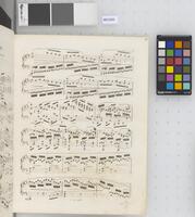 „Conservatoire Impérial | de Musique & de Déclamation | Concours de 1857 | 2me PRIX DE PIANO | DÉCERNÉ A MLLE C.[aroline] RÉMAURY | À L’UNANIMITÉ”. Album, druga nagroda w konkursie pianistycznym Konserwatorium Paryskiego w 1857 roku, zawiera reprinty pierwodruków i późniejszych nakładów pierwszych wydań utworów Fryderyka Chopina, opublikowane w latach 40. i 50. XIX w. [ok.1845-1857]., [PL:] Druga nagroda w zakresie pianistyki dla Caroline Rémaury, przyznana w Konkursie Cesarskiego Konserwatorium Muzyki i Deklamacji w 1857 roku., Na przedniej okładzinie oprawy winieta ramkowa złocona, wewnątrz ornament w kształcie liry oraz wytłoczony napis: „Conservatoire Impérial | de Musique & de Déclamation | Concours de 1857 | 2me PRIX DE PIANO | DÉCERNÉ A MLLE C.[aroline] RÉMAURY | À L’UNANIMITÉ”, na drugim polu grzbietu oprawy wytłoczony napis „MUSIQUE | DE | PIANO”., k. 1-23, „1.er CONCERTO | Pour le Piano | avec accompagnement | D’ORCHESTRE | Dédié à Monsieur | F. KALKBRENNER | PAR | Fréd. Chopin. | Op. 11 [...]”. Druk z płyty, Paryż, Brandus et Cie, [1855-57]. Numer wydawniczy: „M. S. 1409.” (na s. 8: „M. S. 1419.”). Na karcie tytułowej pieczęć sygnatury wydawcy „G. Brandus, Dufour & Co”., Paginacja oryginalna sztychowana w górnym zewnętrznym rogu odciśniętej płyty, od 2 do 44 na stronach z tekstem muzycznym. Karty 1 verso i 2 recto puste., Na s. 4, 5, 6, 7, 8, dopiski oł. w tekście muzycznym (palcowanie)., k. 24-32, „3.E | BALLADE | POUR | le Piano, | dédiée | à Mademoiselle Pauline de Moailles | PAR | F. CHOPIN. | Op: 47. [...]”. Druk z płyty, Paryż, Brandus et Cie, [1854-57]. Numer wydawniczy: „M. S. 3486.”. Na karcie tytułowej pieczęć sygnatury wydawcy „G. Brandus, Dufour & Co”., Paginacja oryginalna sztychowana w górnym zewnętrznym rogu odciśniętej płyty, od 2 do 15 na stronach z tekstem muzycznym. Karty 24 verso, 25 recto i 32 verso puste., k. 33-44, „Grande | POLONAISE BRILLANTE | précédée d’un | ANDANTE SPIANATO | pour le | Piano | avec accompt d’Orchestre | dédiée à | Madame d’Est | Par | F. Chopin | Op. 22 [...]”. Druk z płyty, Paryż, Brandus et Cie, [1846-51]. Numer wydawniczy: „M. S. 1926.”. Bez pieczęci z sygnaturą wydawcy na karcie tytułowej., Paginacja oryginalna sztychowana w górnym zewnętrznym rogu odciśniętej płyty, od 2 do 22 na stronach z tekstem muzycznym. Karty 33 verso i 34 recto puste., k.45-51, „2 | NOCTURNES | POUR LE | PIANO | dédiés à | Mademoiselle J. W. Stirling | PAR | F. CHOPIN | Op. 55 [...]”. Druk z płyty, Paryż, Brandus et Cie, [1854-57]. Numer wydawniczy: „M. S. 4084.”. Na karcie tytułowej pieczęć sygnatury wydawcy „G. Brandus, Dufour & Co” (częściowo odcięta)., Paginacja oryginalna sztychowana w górnym zewnętrznym rogu odciśniętej płyty, od 2 do 11 na. stronach z tekstem muzycznym. Karty 45 verso, 46 recto i 51 verso puste. Na s. 2, 3, 5, 11 dopiski oł. w tekście muzycznym (łuki, znaki chromatyczne)., k. 52-59, „TROIS NOCTURNES | Pour le Piano | DÉDIÉS A | Madame Camille Pleyel | PAR | Frédéric Chopin | Opera 9 [...]”. Druk z płyty, Paryż, Brandus et Cie, [1848-51]. Numer wydawniczy: „M. S. 1287.”. Na karcie tytułowej pieczęć sygnatury wydawcy „Brandus et Cie”., Paginacja oryginalna sztychowana w górnym zewnętrznym rogu odciśniętej płyty, od 2 do 13 na stronach z tekstem muzycznym. Karty 52 verso, 53 recto i 59 verso puste. Na s. 12 i 13 na górnym marginesie adn. oł. ( „Z” [?])., k. 60-66, „Trois Nocturnes | POUR | LE PIANO dédiés à son ami | Ferdinand Hiller | PAR | Frédéric Chopin | Op. 15.[...]”. Druk z płyty, Paryż, Brandus et Cie, [1846-54]. Numer wydawniczy: „M. S. 1529.”. Na karcie tytułowej pieczęć sygnatury wydawcy „Brandus et Cie” (częściowo odcięta)., Paginacja oryginalna sztychowana w górnym zewnętrznym rogu odciśniętej płyty, od 2 do 11 na stronach z tekstem muzycznym. Karty 60 verso, 61 recto i verso i 66 verso puste., k. 67-76, „24 | PRÉLUDES | POUR | le Piano | dédiés à son ami | CAMILLE PLEYEL, | PAR | FRÉD. CHOPIN | Op: 28. [...]”. Druk z płyty, Paryż, Brandus et Cie, [1855-57]. Numer wydawniczy]: „B. et Cie 4594.”. Na karcie tytułowej pieczęć sygnatury wydawcy „Brandus et Cie”., Paginacja oryginalna sztychowana w górnym zewnętrznym rogu odciśniętej płyty, od 2 do 17 na stronach z tekstem muzycznym. Karty 67 verso, 68 recto i 76 verso puste., Na dolnych marginesach s. 2 i 5 ad. oł. (inicjały [?])., k. 77-90, „24 | PRÉLUDES | POUR | le Piano | dédiés à son ami | CAMILLE PLEYEL, | PAR | FRÉD. CHOPIN | Op: 28. [...]”.Druk z płyty, Paryż, Brandus et Cie, [1855-57]. Numer wydawniczy: „B. et Cie 4594.”. Na karcie tytułowej pieczęć sygnatury wydawcy „Brandus et Cie”., Paginacja oryginalna sztychowana w górnym zewnętrznym rogu odciśniętej płyty, od 2 do 25 na stronach z tekstem muzycznym. Karty 77 verso, 78recto i 90 verso puste., Na dolnych marginesach s. 9, 15, 17, 18, 20, 21, 22, 25 adn. oł. (inicjały [?]). Na s. 16 dopiski oł. w tekście muzycznym (znaki chromatyczne)., k. 91-101, „SONATE Pour le Piano | Composée par | Fred. CHOPIN | Op: 35. [...]”.Druk z płyty, Paryż, Brandus et Cie, [1855-57]. Numer wydawniczy: „B. et Cie 6475.” na s. 1, na pozostałych stronach numer wydawniczy pierwodruku: „T 891.”. Na karcie tytułowej pieczęć sygnatury wydawcy „G. Brandus, Dufour & Co"., Paginacja oryginalna sztychowana w górnym zewnętrznym rogu odciśniętej płyty, od 1 do 19 na stronach z tekstem muzycznym. Karty 91 verso i 101 verso puste., Na s. 12, 13 dopiski oł. w tekście muzycznym (znaki chromatyczne)., k. 102-117, „SONATE | POUR LE | PIANO | Dédiée à Madame la Comtesse | E. de Perthuis | PAR | F. CHOPIN. | Op: 58. [...]”. Druk z płyty, Paryż, J. Meissonnier, [1845-1850]. Numer wydawniczy: „J. M. 2187.”. Na karcie tytułowej pieczę