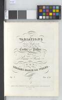 „COLLECTION COMPLÈTE | DES ŒUVRES | Composés pour le | Piano-Forte | PAR | CH. M. DE WEBER | très humblement dédiée à | Son Altesse Royale | LOUIS X Grand Duc DE HESSE | PAR L’ÉDITEUR”, druk z płyty, trzy tomy współoprawne, Maurice Schlesinger, Paryż, [1828-1836]. Egzemplarz z odręczną dedykacją wydawcy dla Fryderyka Chopina [ok. 1836]., [PL:] Carl Maria Weber, Dzieła wszystkie na fortepian dedykowane z pokorą Jego Wysokości Ludwikowi I, Wielkiemu Księciu Hesji, Oprawa oryginalna. Przednia i tylna okładzina pokryta skórą w kolorze ciemnozielonym, grzbiet i narożniki czarne. Grzbiet pięciopolowy z czterema wypukłymi zwięzami, w drugim polu złocony napis: „WEBER | – | PIANO”, przy dolnej krawędzi grzbietu złocony monogram „F C” [Fryderyk Chopin]. Wyklejki z papieru marmurkowego w odcieniach beżu i brązu., W lewym górnym rogu luźnej karty wyklejkowej przedniej verso adn. atr.: „Souvenir très affectueux | à mon ami Victor Gille | [podpis nieczytelny] | 2 Mai 1916.”., W prawym górnym rogu karty 1 recto adn. oł. „Coll SB 1/75” [?]., Na karcie 1 verso przedstawienie graficzne: Jean Marie Joseph Bove według rysunku Zoelnera, Portret Carla Marii Webera, litografia, popiersie ¾ w lewo, pod przedstawieniem napis: „C.es MARIE DE WEBER.”, poniżej po prawej faksymile podpisu Webera: „Carl Maria von Weber”., Karta 2 recto – tytułowa dla całości, z ozdobną winietą. Nadruk: „COLLECTION COMPLÈTE | DES ŒUVRES | Composés pour le | Piano-Forte | PAR | CH. M. DE WEBER | très humblement dédiée à | Son Altesse Royale | LOUIS X Grand Duc DE HESSE | PAR L’ÉDITEUR. | PARIS, Chez Maurice SCHLESINGER, M.d de Musique du ROI, Editeur des Œuvres de Mozart, Rossini, Hummel, Moscheles, &c, | Rue de Richelieu, N.o 97 [/] BERLIN, Chez A. M. SCHLESINGER, Libraire et Editeur de Musique.” Poniżej adn oł.: „1828/29” (przypuszczalna data pierwszej edycji „Collection complète”)., W prawym górnym rogu adn. atr. „offert a [właść. à] son ami F. Chopin | par l’Editeur”, Karta 3 verso – tytułowa dla pierwszego tomu, z ozdobną winietą. Nadruk: „Collection Complète | des Œuvres Composés | Pour le Piano-Forte | PAR | CHARLES MARIE DE WEBER. | 1.re Livrasion. [I] Variations.”, poniżej incipity utworów zawartych w tomie, opatrzone numerem strony według paginacji oryginalnej sztychowanej, w kolejności jak poniżej (kolejność incipitów odpowiada kolejności utworów):, s. 1: „VARIATIONS BRILLANTES | Sur un Thème original Op. 1.” [nr wyd. M.S. 800] [właść. op. 2], s. 8: „VARIATIONS | Sur un Air de Castor et Pollux. Op. 5.” [nr wyd. M.S. 801], s. 17: „SEPT VARIATIONS | Sur l’air: Vien qua Dorina bella Op. 7.” [nr wyd. M.S. 115], s. 28: „THÈME ORIGINAL VARIÉ. Op. 22.” [nr wyd. M.S. 803], s. 38: „ROMANCE DE JOSEPH VARIEE | Op. 28.” [nr wyd. M.S. 804], s. 51: „AIR RUSSE VARIÉ” | Op. 40.” [nr wyd. M.S.805], s. 66: „VARIATIONS BRILLANTES | Sur un Air de Preciosa Op. 55.” [nr wyd. M.S. 806], s. 73: „VALSES BRILLANTES.” [nr wyd. M.S. 809], Ponad dolną krawędzią odcisku płyty nadruk: „A Paris, chez Maurice SCHLESINGER M.d de Musique du Roi, Rue de Richelieu N.o 97. | (Nota:) Chaque Ouvrage se vend séparément le prix indiqué ci-dessus.| Edition gravee par M.lle ALEXANDRINE LARD.”., Karta 4 recto – tytułowa dla drugiego i trzeciego tomu, z ozdobną winietą. Nadruk: „Collection Complète | des Œuvres Composés | Pour le Piano-Forte | PAR | CHARLES MARIE DE WEBER. | Sonates & Rondeaux | 2me & 3me Livraison”, poniżej incipity utworów zawartych w tomach, opatrzone numerem strony według paginacji oryginalnej sztychowanej, w kolejności jak poniżej (kolejność incipitów nie odpowiada kolejności utworów):, s. 142: „GRANDE SONATE. | Op: 24.” [nr wyd. M.S. 834], s. 172: GRANDE SONATE. | Op: 39.” [nr wyd. M.S. 835], s. 82: GRANDE POLONAISE. | Op: 50.” [nr wyd. M.S. 119] [właść. op. 21], s. 91: INVITATION À LA VALSE. | Op: 65.” [nr wyd. M.S. 6], s. 101: SECONDE POLONAISE BRILLANTE. | Op: 72.” [nr wyd. M.S. 807], s. 200: „GRANDE SONATE, | Op: 49.” [nr wyd. M.S. 821], s. 225: „SONATE | Op: 70.” [nr wyd. M.S. 823], s.109: „MOMENTO CAPRICCIOSO. | Op: 12.” [nr wyd. M.S. 802], s.116: „RONDEAU BRILLANT. | Op: 62.” [nr wyd. M.S. 37], s.129: „ALLEGRO DI BRAVURA” [nr wyd. M.S. 808], Ponad dolną krawędzią odcisku płyty nadruk: „A Paris, chez Maurice SCHLESINGER M.d de Musique du Roi, Rue de Richelieu N.o 97. | (Nota:) Chaque Ouvrage se vend séparément le prix indiqué ci-dessus.| AVIS: Les Livraisons 1, 2 et 3 forment le tome 1.r de la Colection de Weber: en placant les oeuvres suivant pagination indiquee.”., Na kartach 5r, 10r, 14r, 21r, 27r, 34r, 42r, 46r karty tytułowe poszczególnych zeszytów wydawniczych pierwszego tomu, z ozdobnymi winietami., Na kartach 51r, 56r, 62r, 67r, 72r, 79r, 87r, 102r, 117r, 132r karty tytułowe poszczególnych zeszytów wydawniczych drugiego i trzeciego tomu, z ozdobnymi winietami., Na kartach 146-172 dołączone zeszyty wydawnicze spoza wydawnictwa „Collection Complète”:, k.146-159: „Concert Stuck | MORCEAU […] Op: 79.”, Prilipp, [nr wyd. C.P. (362) et C.IE], k. 160-172: DEUX | DIVERTISSEMENTS […] A QUATRE MAINS”, Societe pour le Publication de Musique Classique et Moderne [nr wyd. M.S.978], H. Baron Music AUTH6590, Towarzystwo imienia Fryderyka Chopina (Warszawa) AUTH17