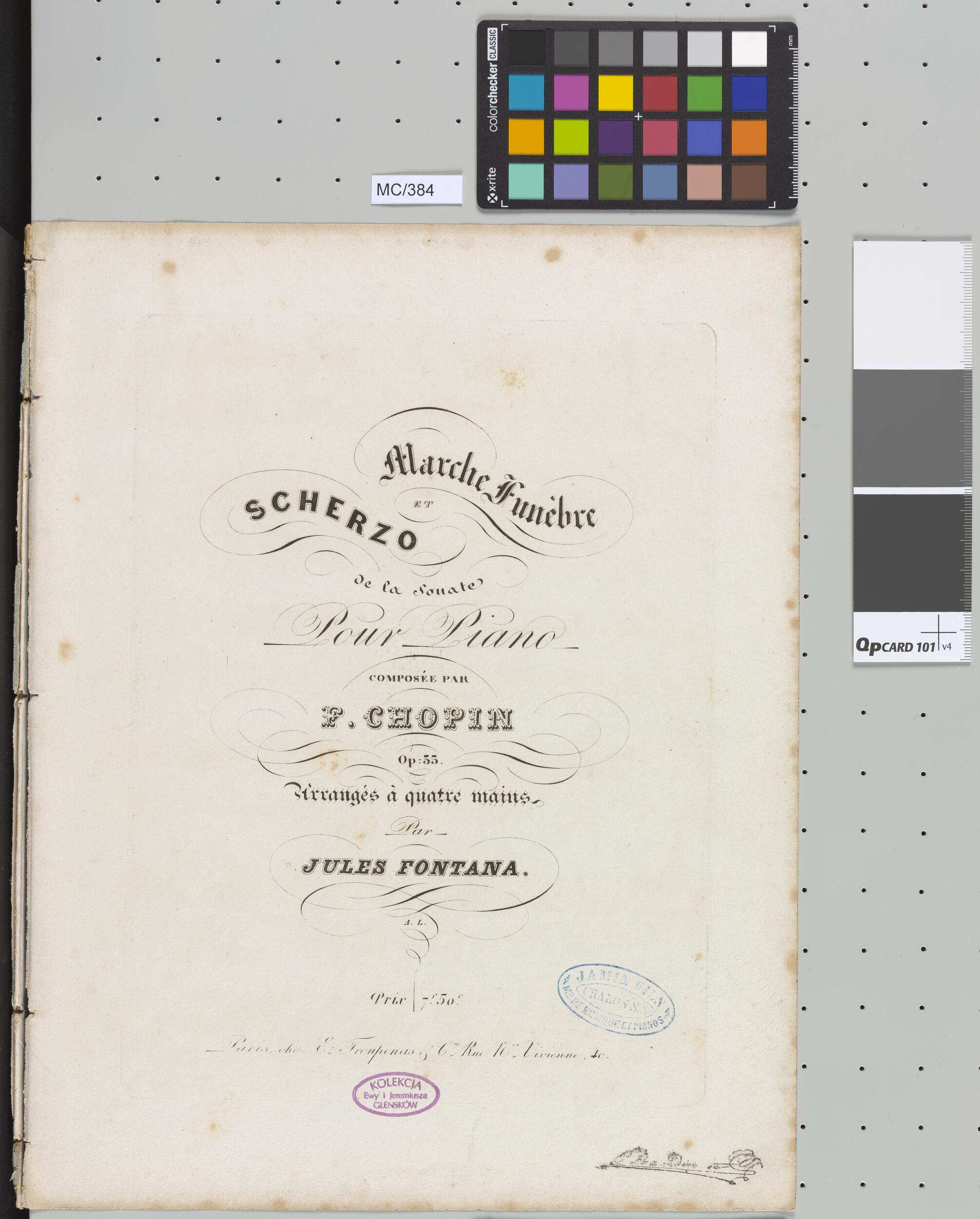 "Marche Funèbre [/] ET [/] SCHERZO [/] de la Sonate [/] Pour Piano [/] COMPOSÉE PAR [/] F. CHOPIN [/] Op: 35. [/] Arrangés à quatre mains [/] Par [/] JULES FONTANA"