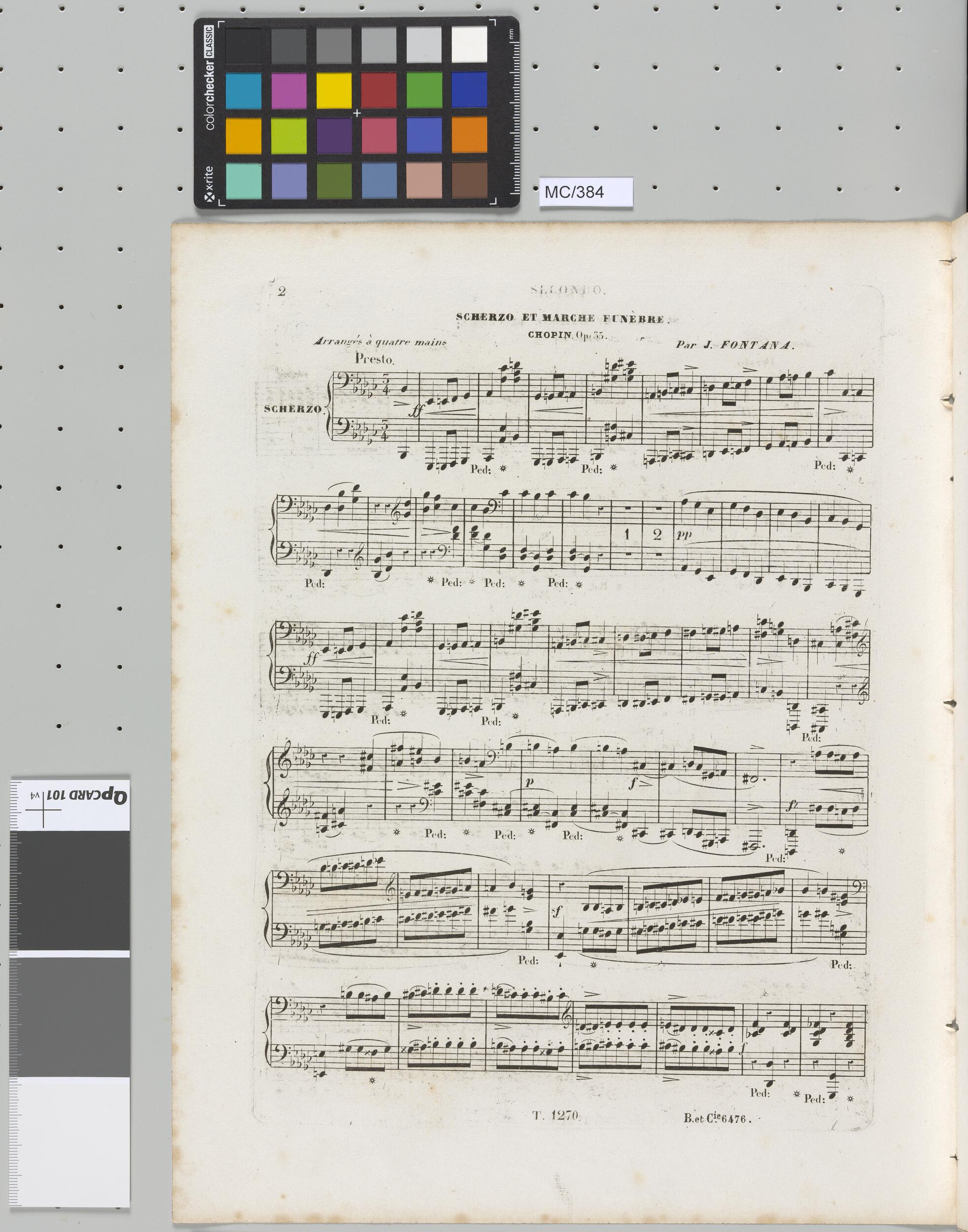 "Marche Funèbre [/] ET [/] SCHERZO [/] de la Sonate [/] Pour Piano [/] COMPOSÉE PAR [/] F. CHOPIN [/] Op: 35. [/] Arrangés à quatre mains [/] Par [/] JULES FONTANA"