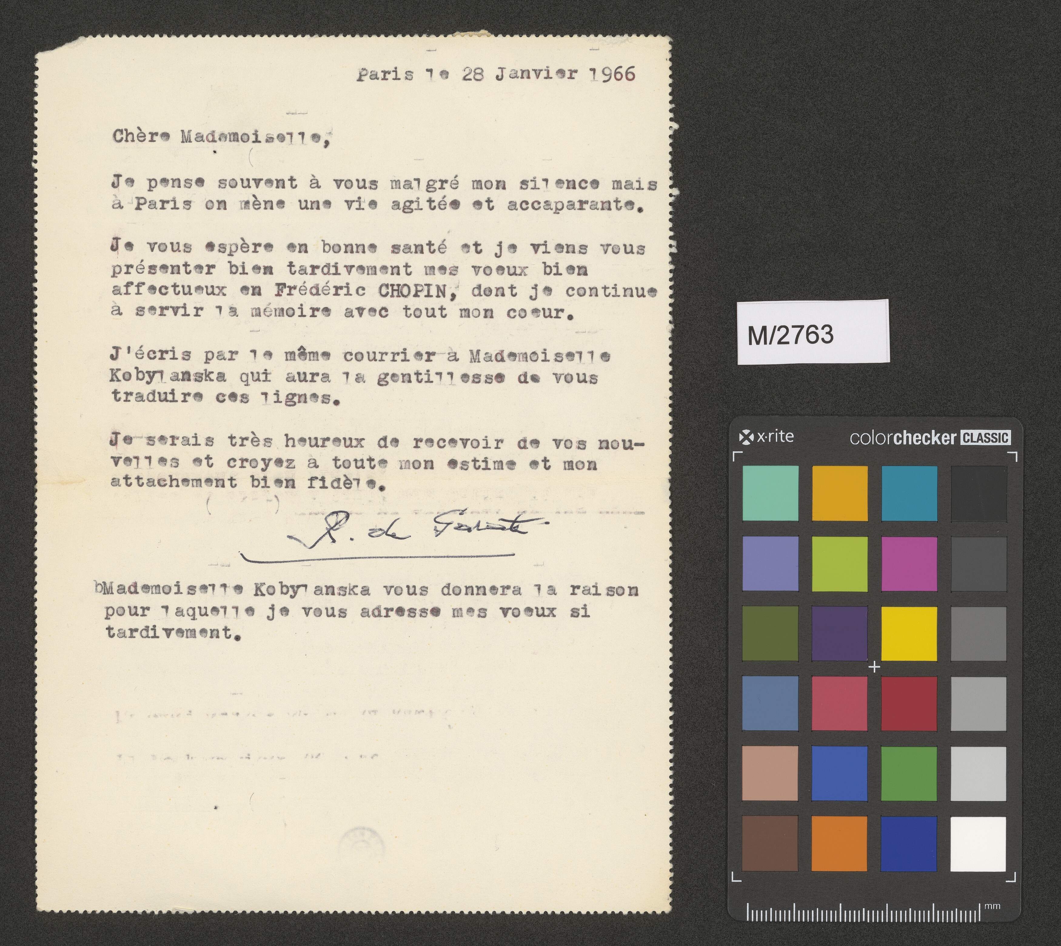 List Rogera de Garate'a, założyciela i sekretarza generalnego stowarzyszenia „Les amis de Frédéric Chopin” do Ludwiki Ciechomskiej