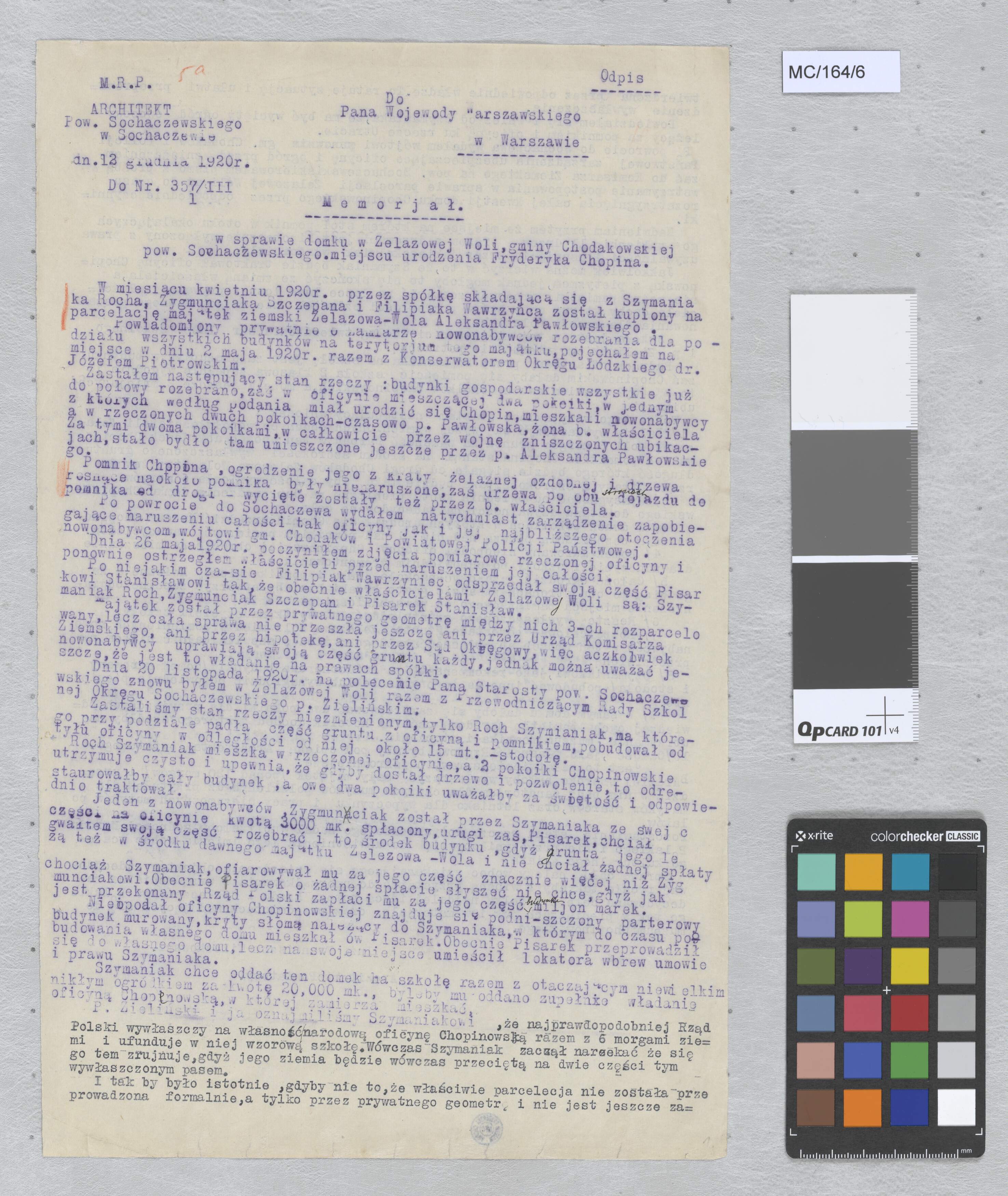 Zbiór dokumentów dotyczących wykupu z rąk prywatnych domu w Żelazowej Woli, w którym urodził się Fryderyk Chopin, wraz z gruntem