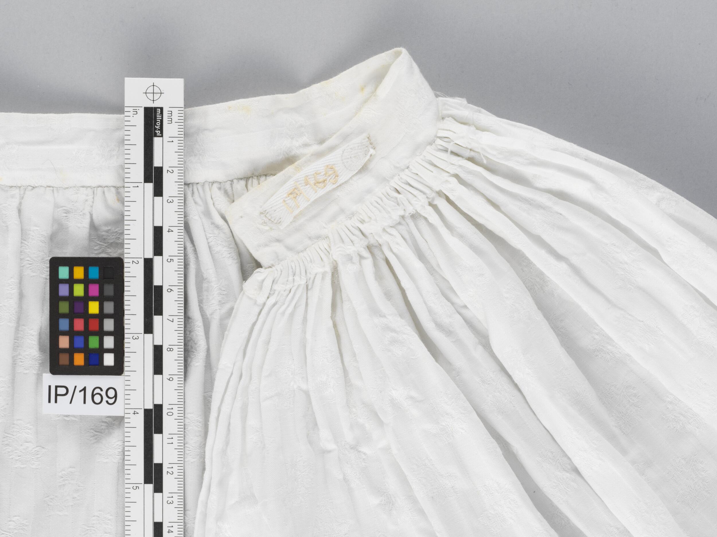 Halka krótka z monogramem „AL” wyszytym czerwoną nicią