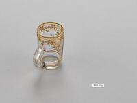 Autor nieznany, Kubek ozdobny do picia wód mineralnych z Dusznik-Zdroju, szkło, złocenia, XIX w., Liście dębu i inne motywy roślinne., Milcarz, Zofia AUTH5457, Towarzystwo imienia Fryderyka Chopina (Warszawa) AUTH17