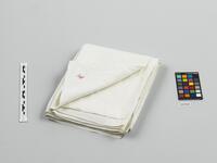 Autor nieznany, George Sand (haft), Serweta Fryderyka Chopina z wyhaftowanym czerwonym monogramem „FC”, tkanina o adamaszkowym splocie, haft bawełnianą nicią, II ćw. XIX w., Chopin, Fryderyk Franciszek AUTH49, Dudevant, Solange AUTH165, George Sand AUTH84, Lauth-Sand, Aurore AUTH74, Smeets, Georges-André AUTH166, Towarzystwo imienia Fryderyka Chopina (Warszawa) AUTH17