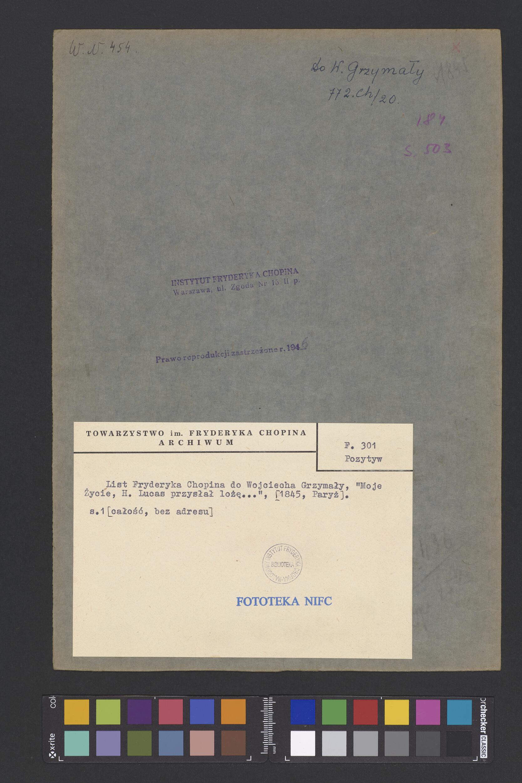 List Fryderyka Chopina do Wojciecha Grzymały w Paryżu