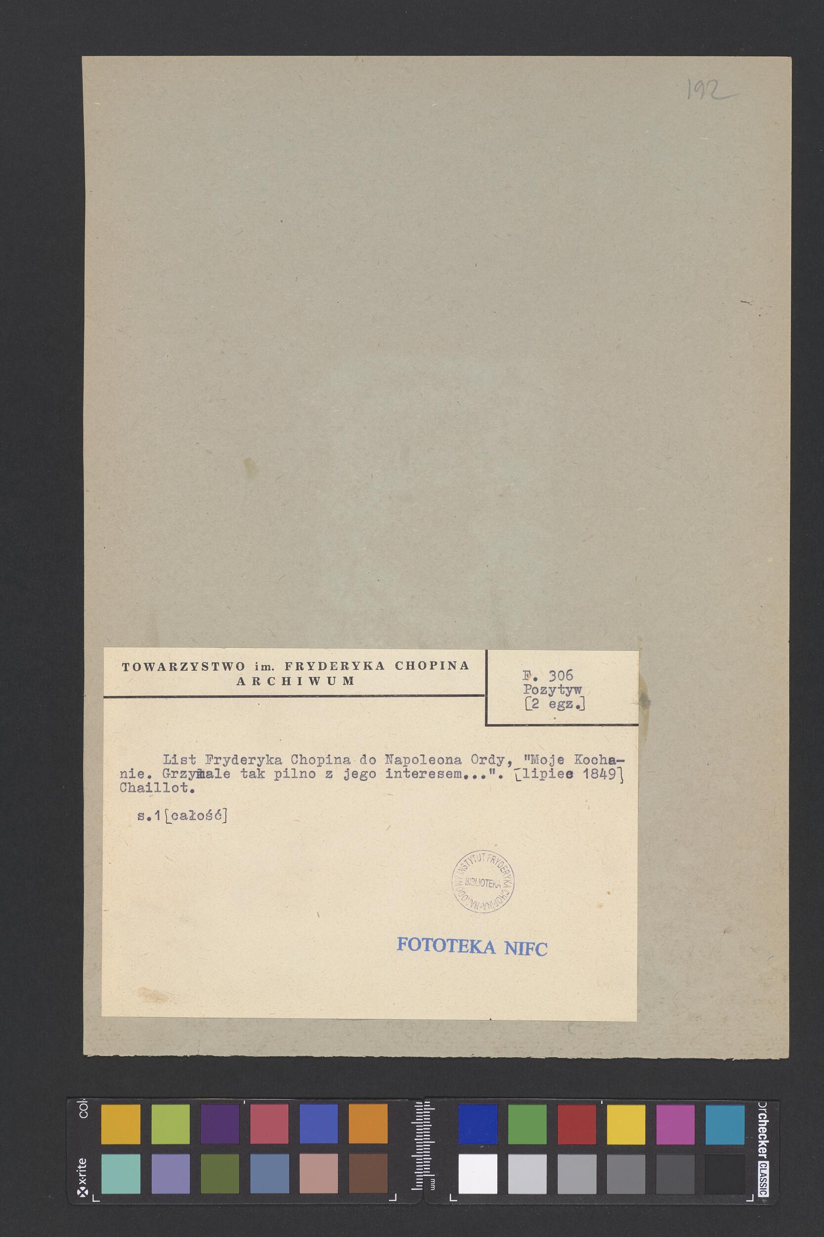 List Fryderyka Chopina do Napoleona Ordy w Paryżu (POZYTYW II EGZ)