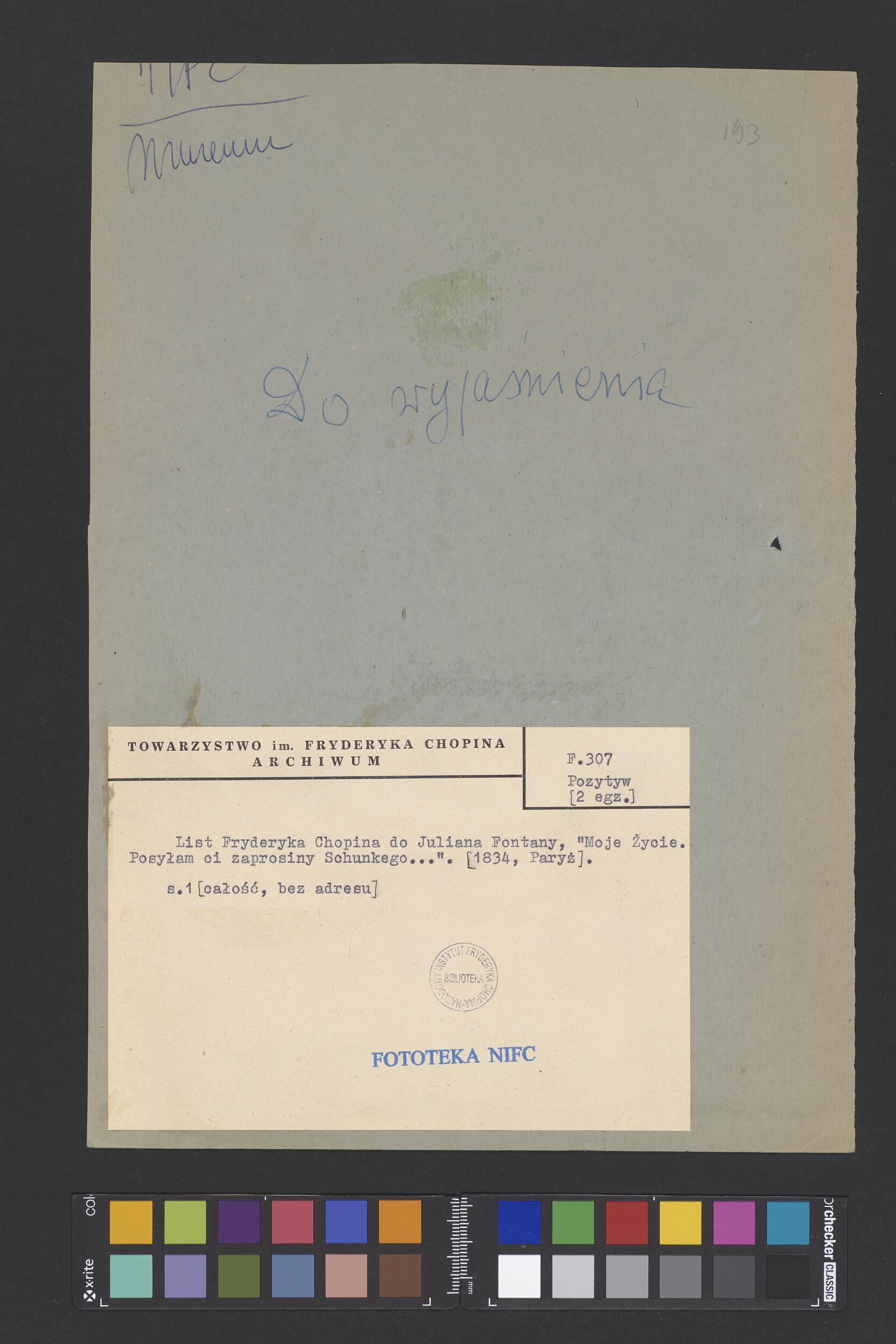 List Fryderyka Chopina do Juliana Fontany w Paryżu (POZYTYW II EGZ)