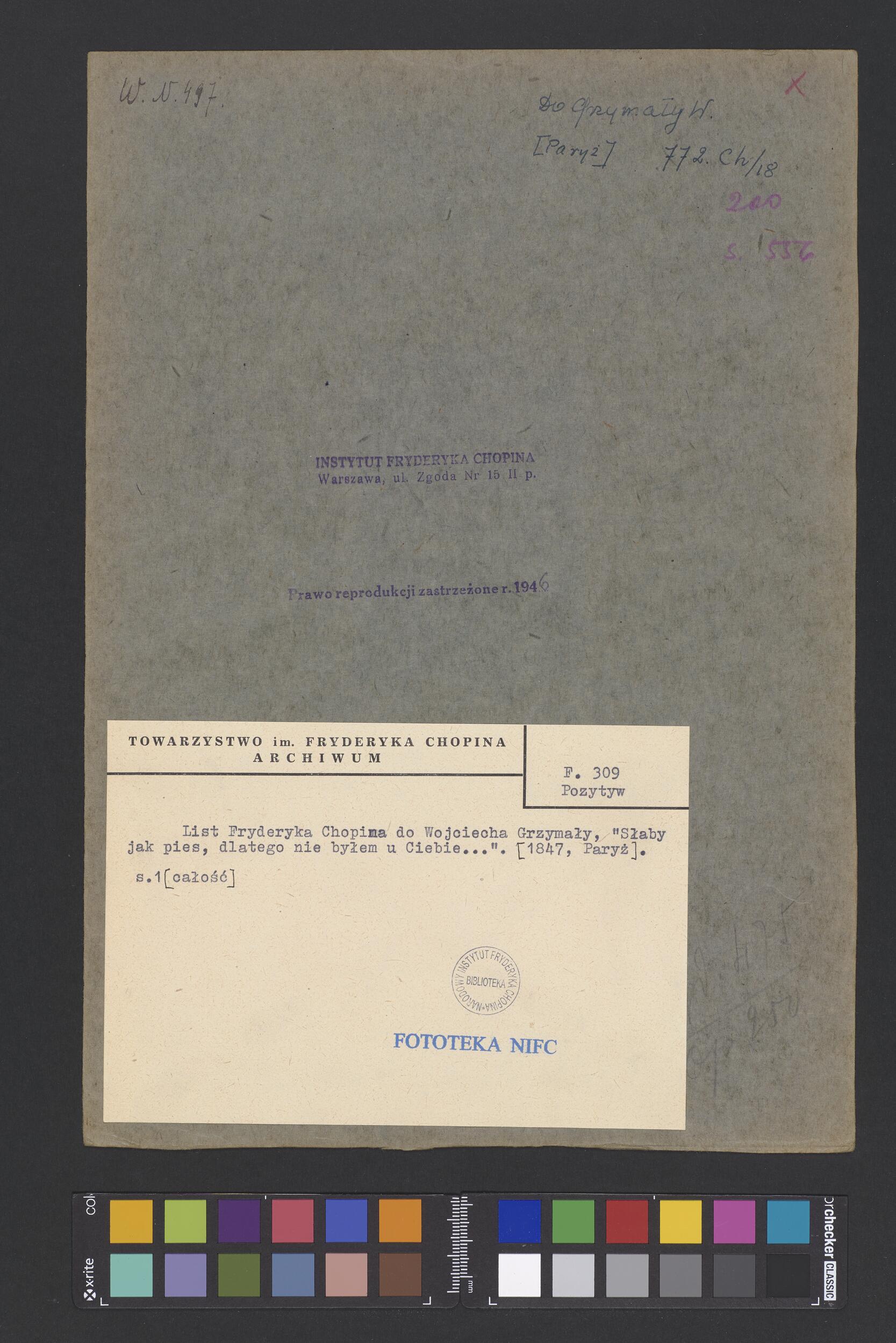 List Fryderyka Chopina do Wojciecha Grzymały w Paryżu (POZYTYW)