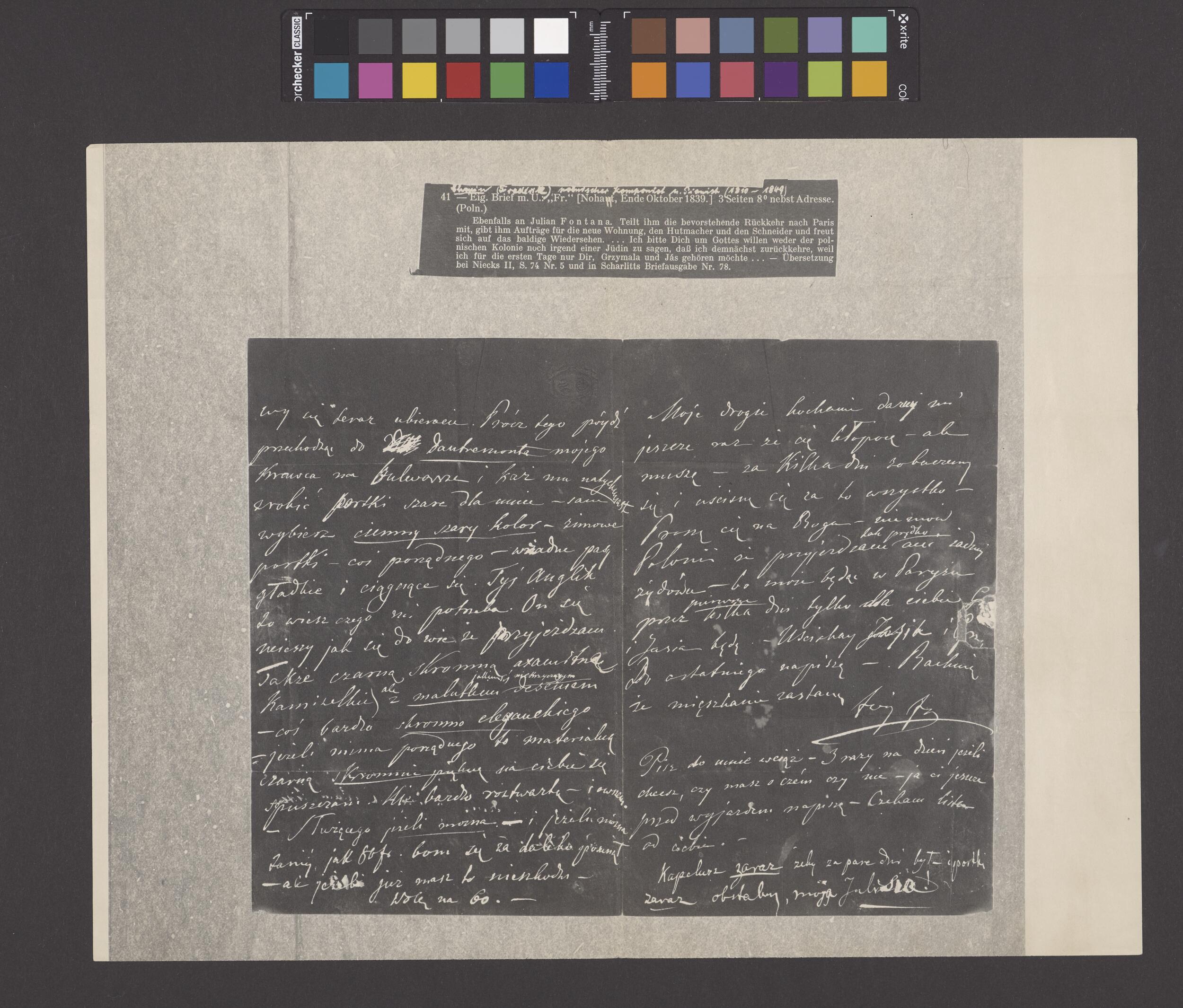 List Fryderyka Chopina do Juliana Fontany w Paryżu