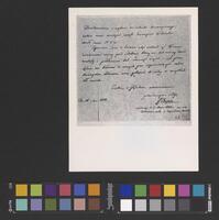 Franciszek Myszkowski, reprodukcja (1953) listu Fryderyka Chopina do Adama Jerzego Czartoryskiego, prezesa Towarzystwa Literackiego Polskiego w Paryżu, „Uwiadomienie o wyborze na członka stowarzyszonego, | jakim mnie zaszczycić raczyło Towarzystwo Literackie [...]”, sygn.: „FFChopin”, [Paryż], 16/01/1833, s. 1., Towarzystwo imienia Fryderyka Chopina (Warszawa)