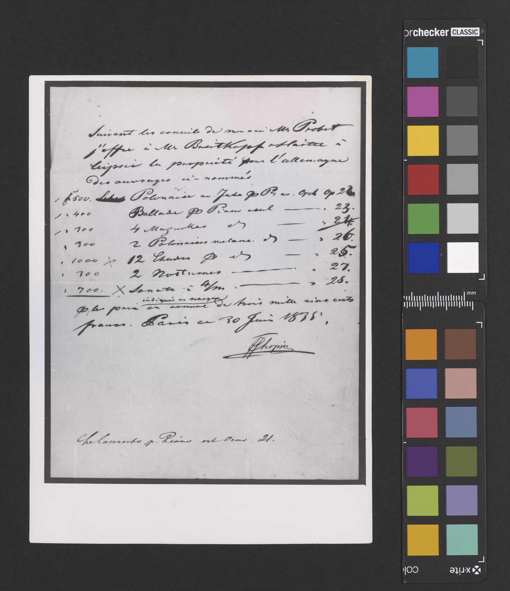 Oferta sprzedaży autorskich praw majątkowych do utworów op. 22, 23, 24, 25, 26, 27 skierowana przez Fryderyka Chopina do firmy Breitkopf & Härtel (POZYTYWY I EGZ)