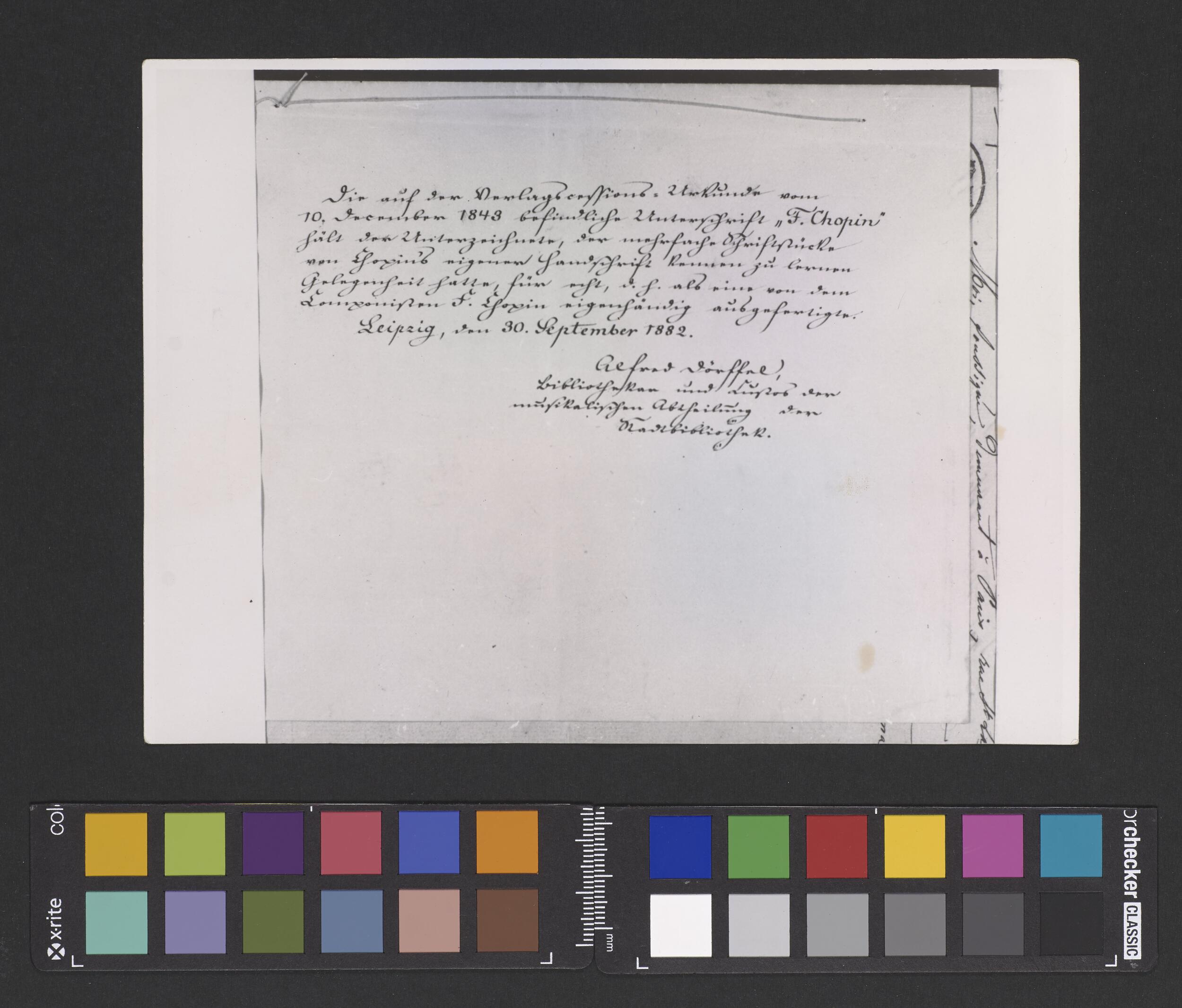 Zaświadczenie stwierdzające autentyczność podpisu Fryderyka Chopina na akcie sprzedaży praw majątkowych firmie Breitkopf & Härtel (POZYTYW I EGZ)