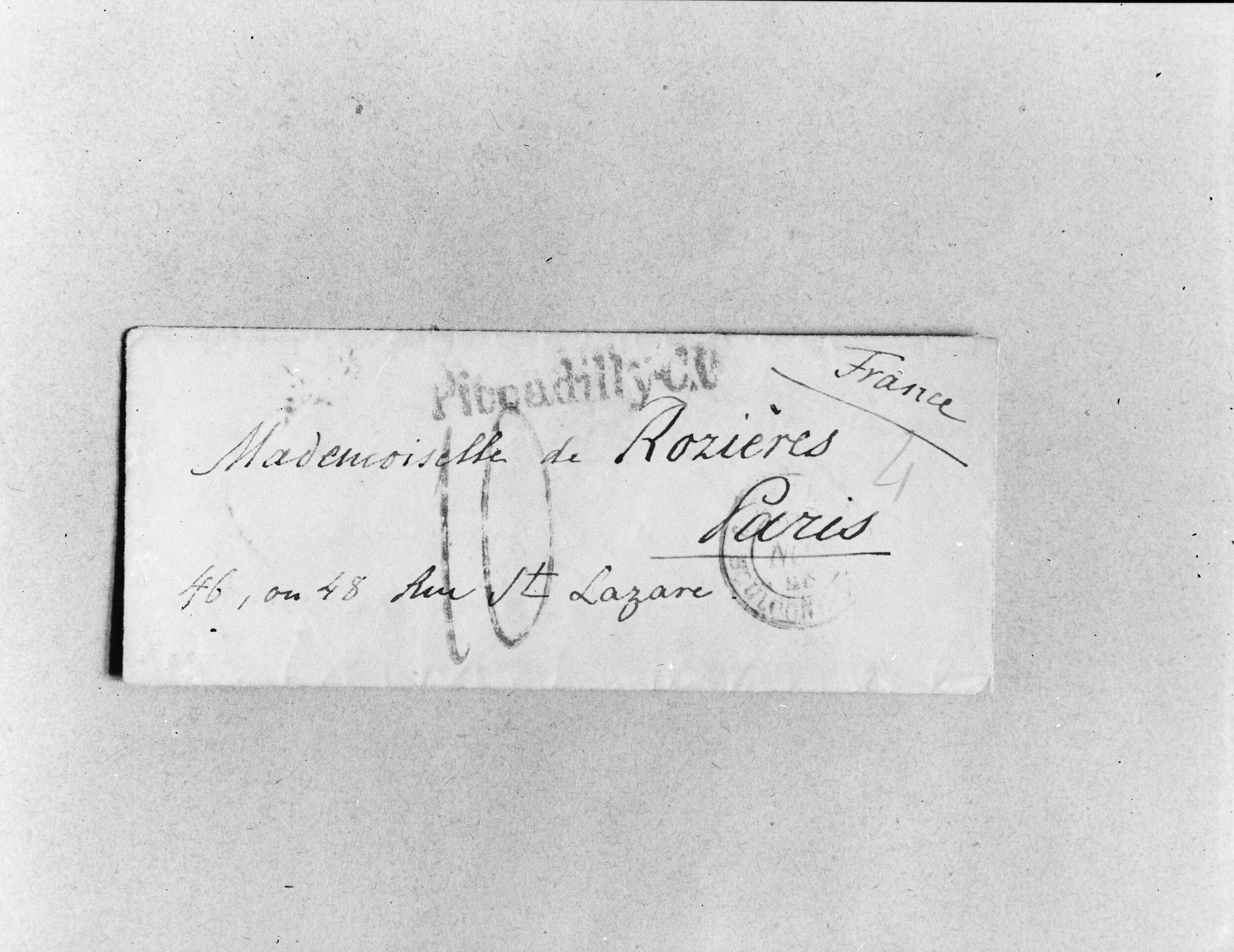 Koperta do listu Fryderyka Chopina do Marie de Rozières w Paryżu (NEGATYW)