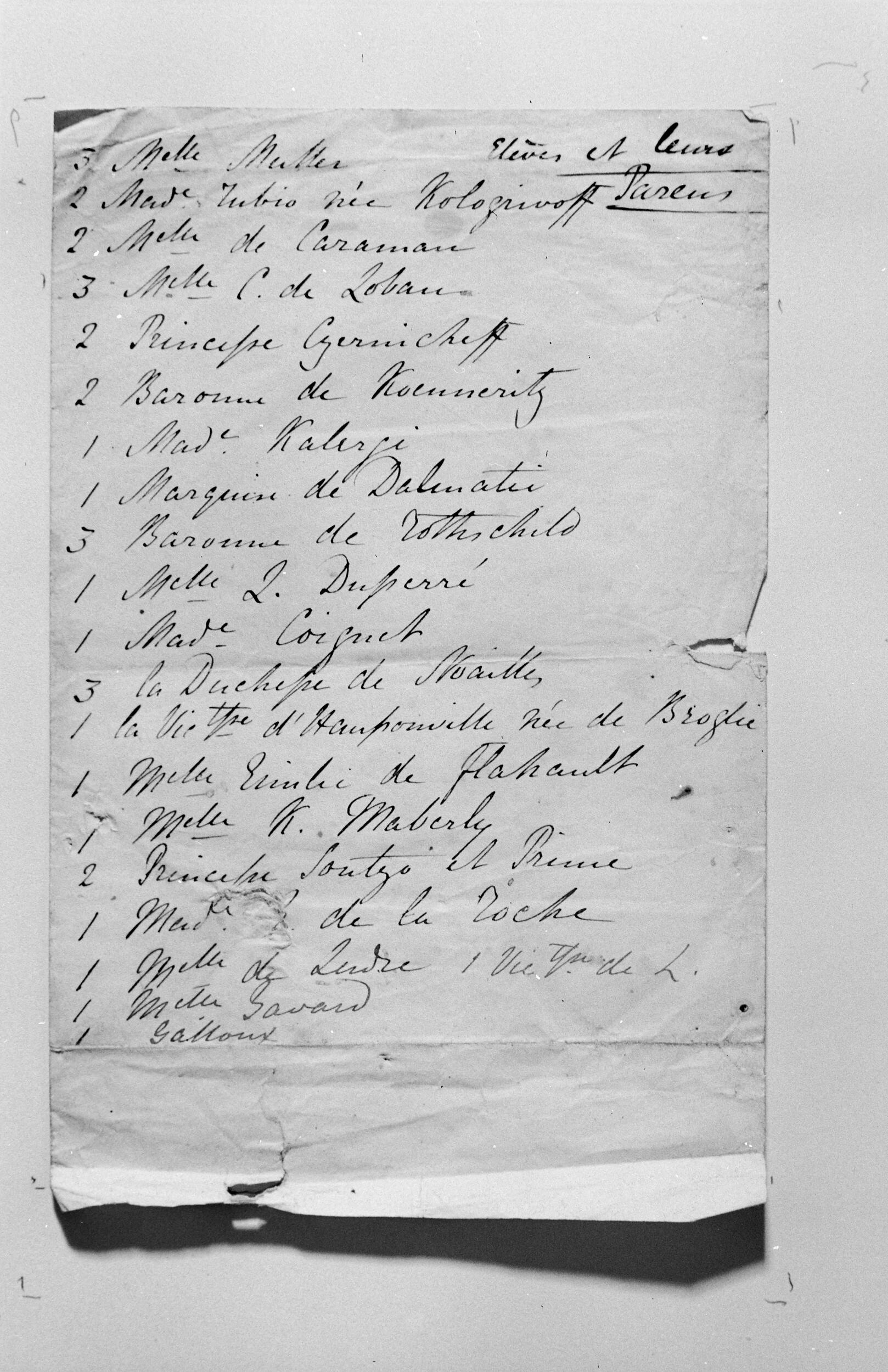 Wykaz nazwisk uczniów Fryderyka Chopina i ich rodziców sporządzony przez Jane Wilhelminę Stirling (NEGATYW)