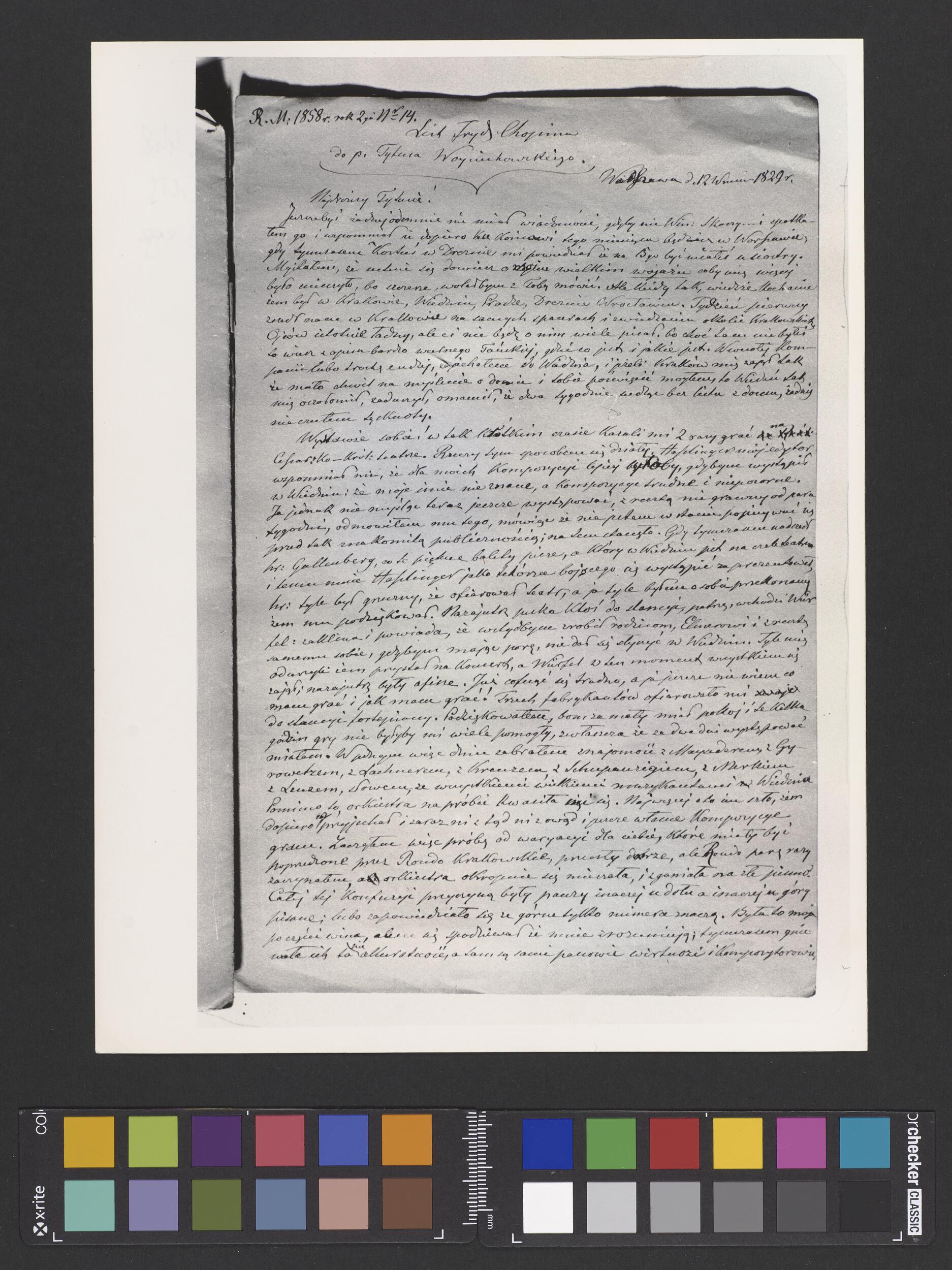 Kopie listów Fryderyka Chopina i dwóch listów do Fryderyka Chopina, opublikowane w „Ruchu Muzycznym” w 1857 i 1858 roku oraz w „Bibliotece Warszawskiej” w 1862 i 1869 roku, sporządzone przez Izabellę Barcińską (POZYTYWY II EGZ)