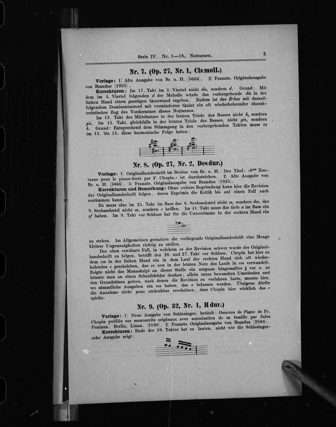 „Friedr. Chopin's Werke. | Kritisch durchgesehene Gesammtausgabe. | Revisionsbericht | über | Fr. Chopin's Notturnen und Polonaisen in der Gesammtausgabe | von Breitkopf und Härtel Serie IV und V. | Revisor: Woldemar Bargiel. […]”