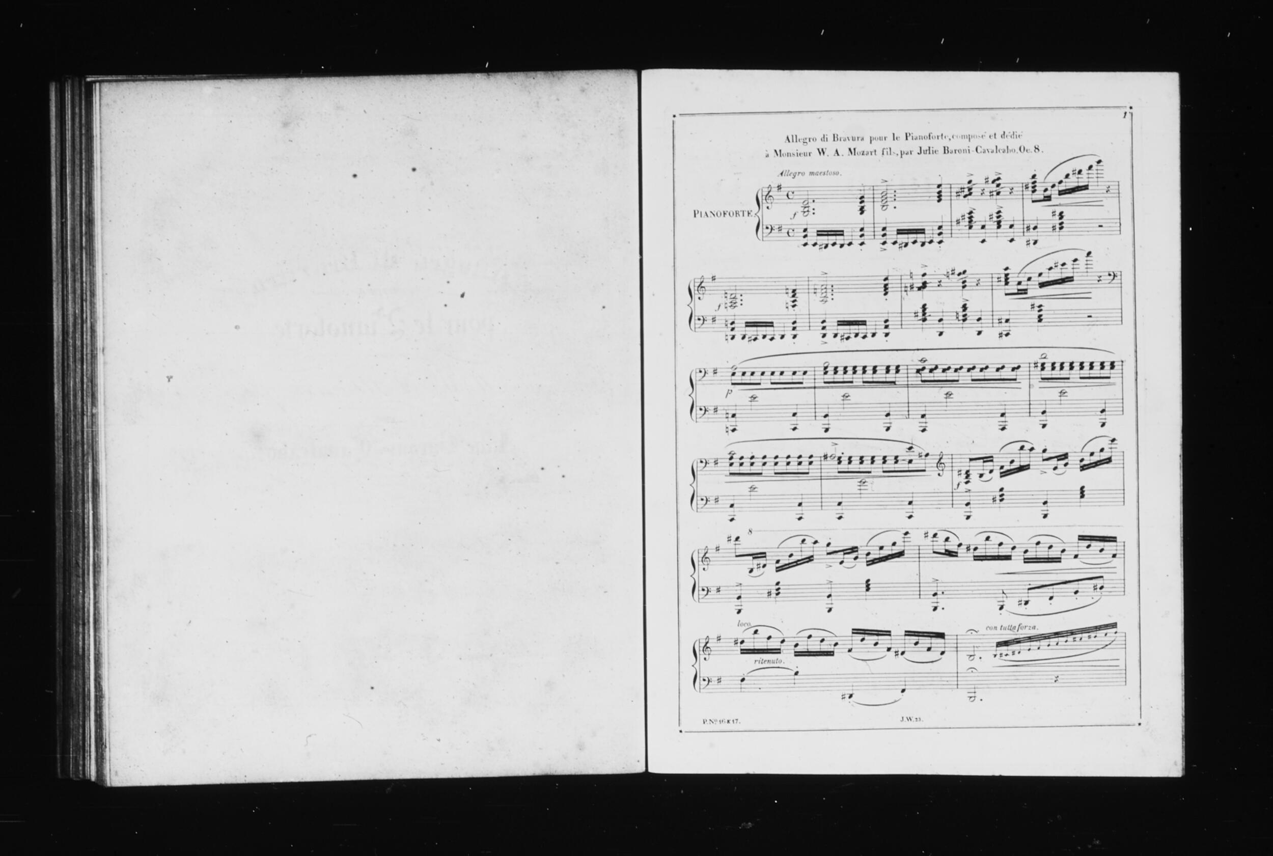 „Allegro di Bravura | composé | pour le Pianoforte | et dédié | a Mr W. A. Mozart, fils. | par | Julie Baroni-Cavalcabó. | Oeuv. 8. […]”