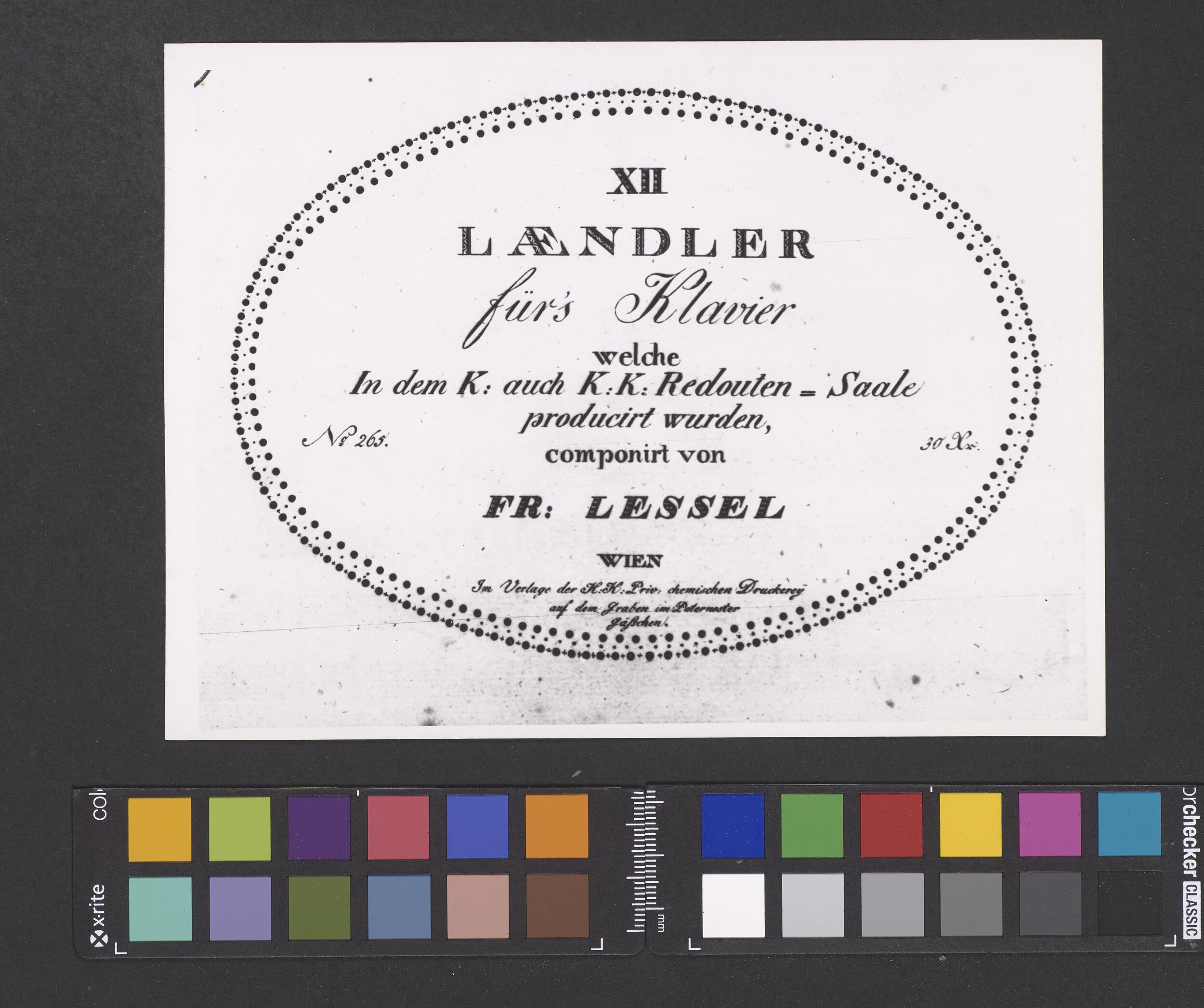 „XII | LAENDLER | für's Klavier | welche | In dem K: auch K: K: Redouten = Saale | producirt wurden, | componirt von | FR: LESSEL [...]” (POZYTYWY)