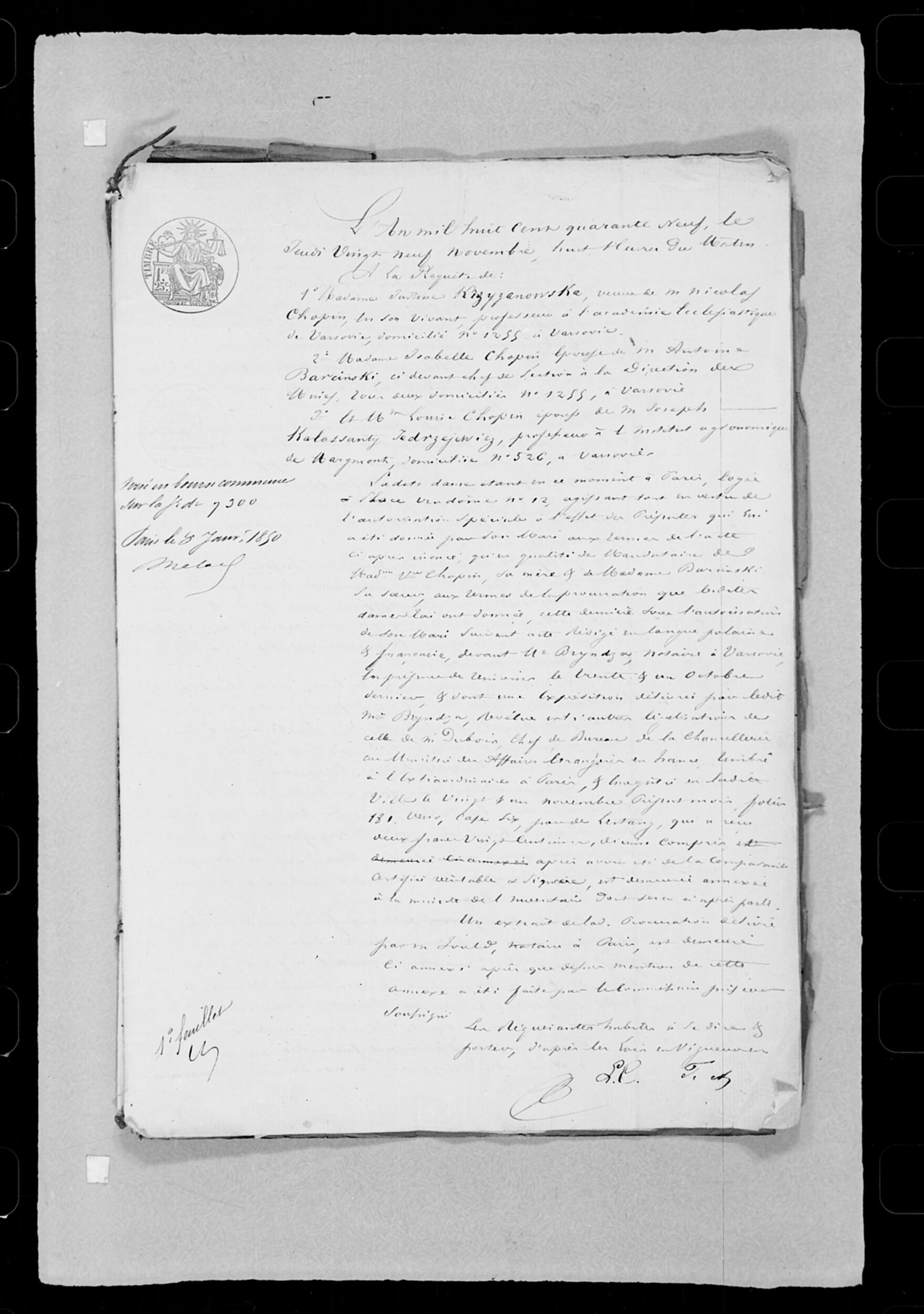 Dokumenty dotyczące zgonu i zabezpieczenia spadku po Fryderyku Chopinie (MIKROFILM)