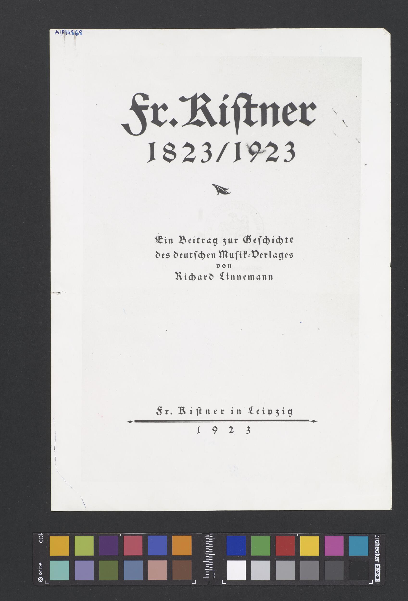 „Fr. Kistner | 1823/1923 | Ein Beitrag zur Geschichte | des deutschen Musik–Verlages | von | Richard Linnemann […]” (POZYTYWY)