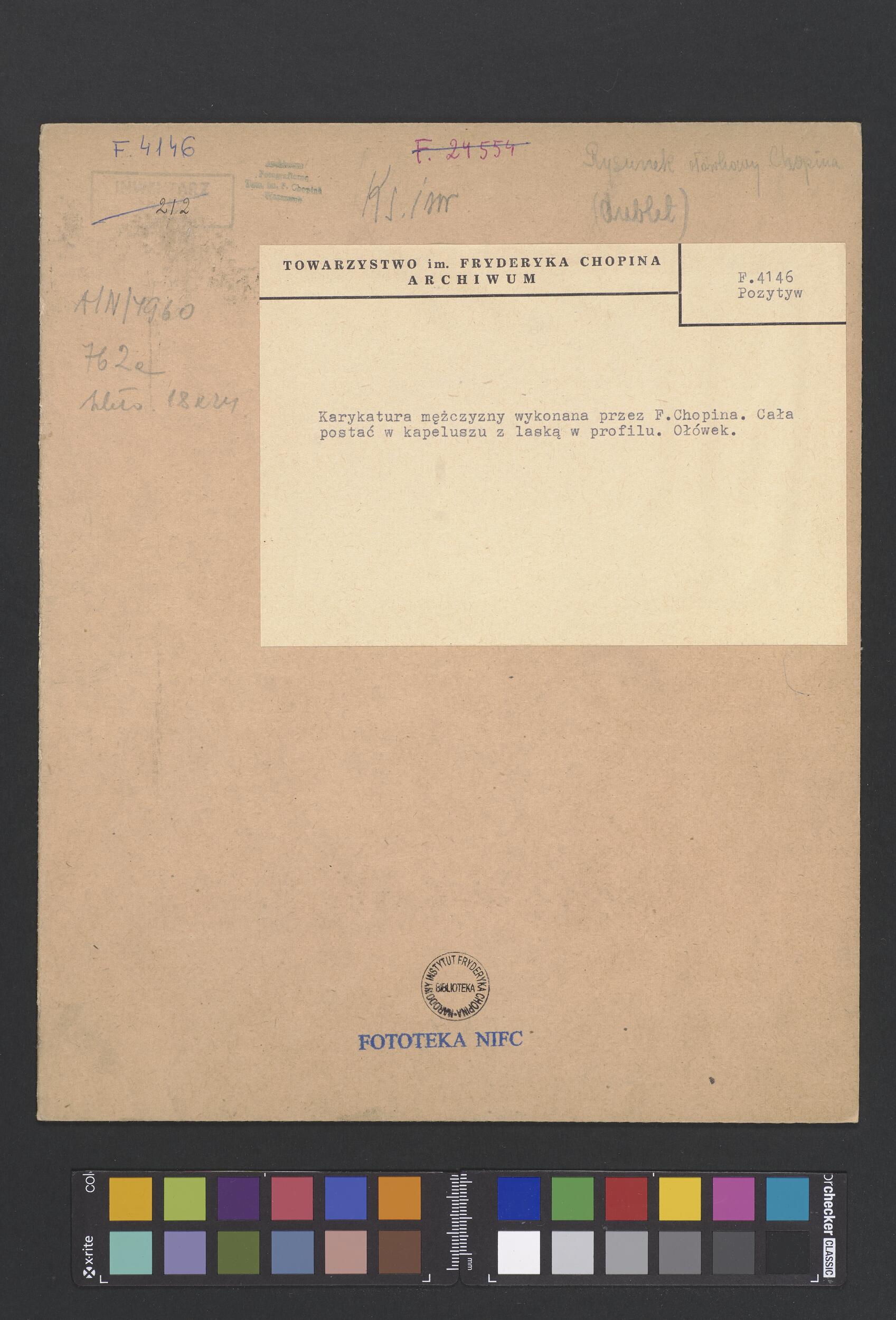 Karykatura mężczyzny w kapeluszu i z laską z profilu (POZYTYW)