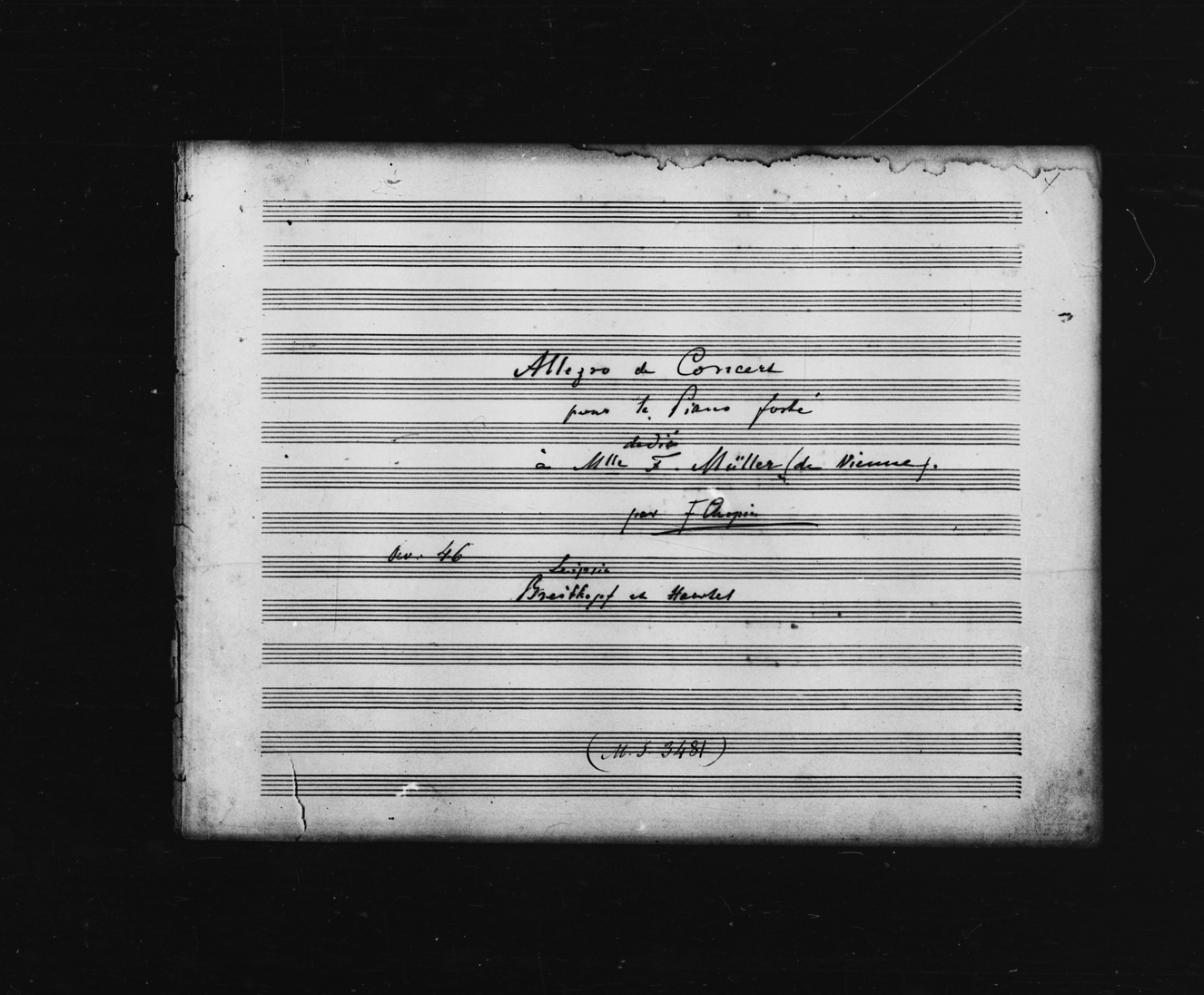 „Allegro de Concert | pour le Piano forté | dedié | à Mlle F. Müller (de Vienne). | par F Chopin | Oev: 46 | Leipsic | Breitkopf et Haertel” (MIKROFILM)