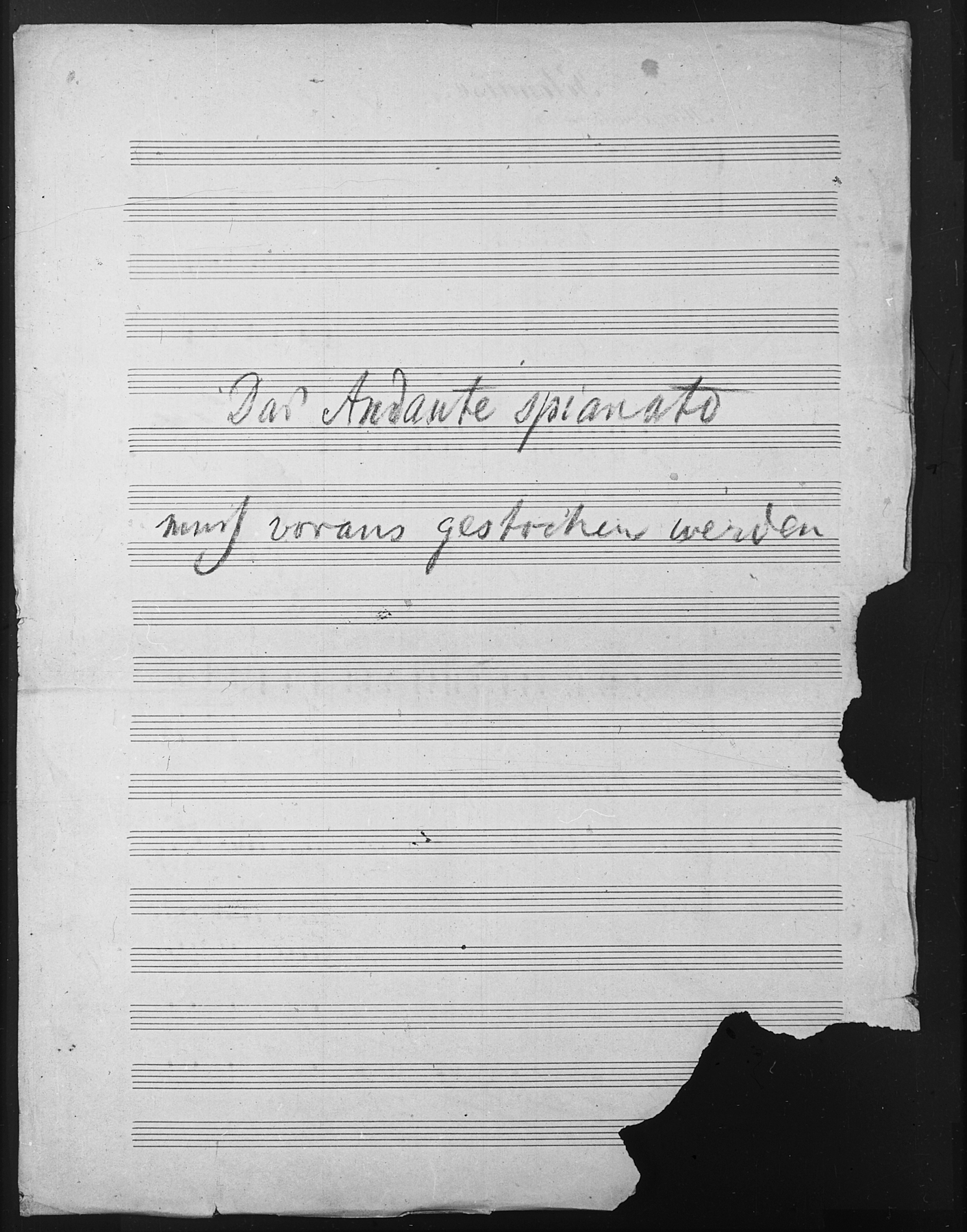 „Partitur. | Grande | Polonaise brillante | (Es dur) | précédée d'un Andante spianato | pour le Piano. | Dédiée à Mme la Baronne d'Est | par | Fréd. Chopin. | Op. 22.”