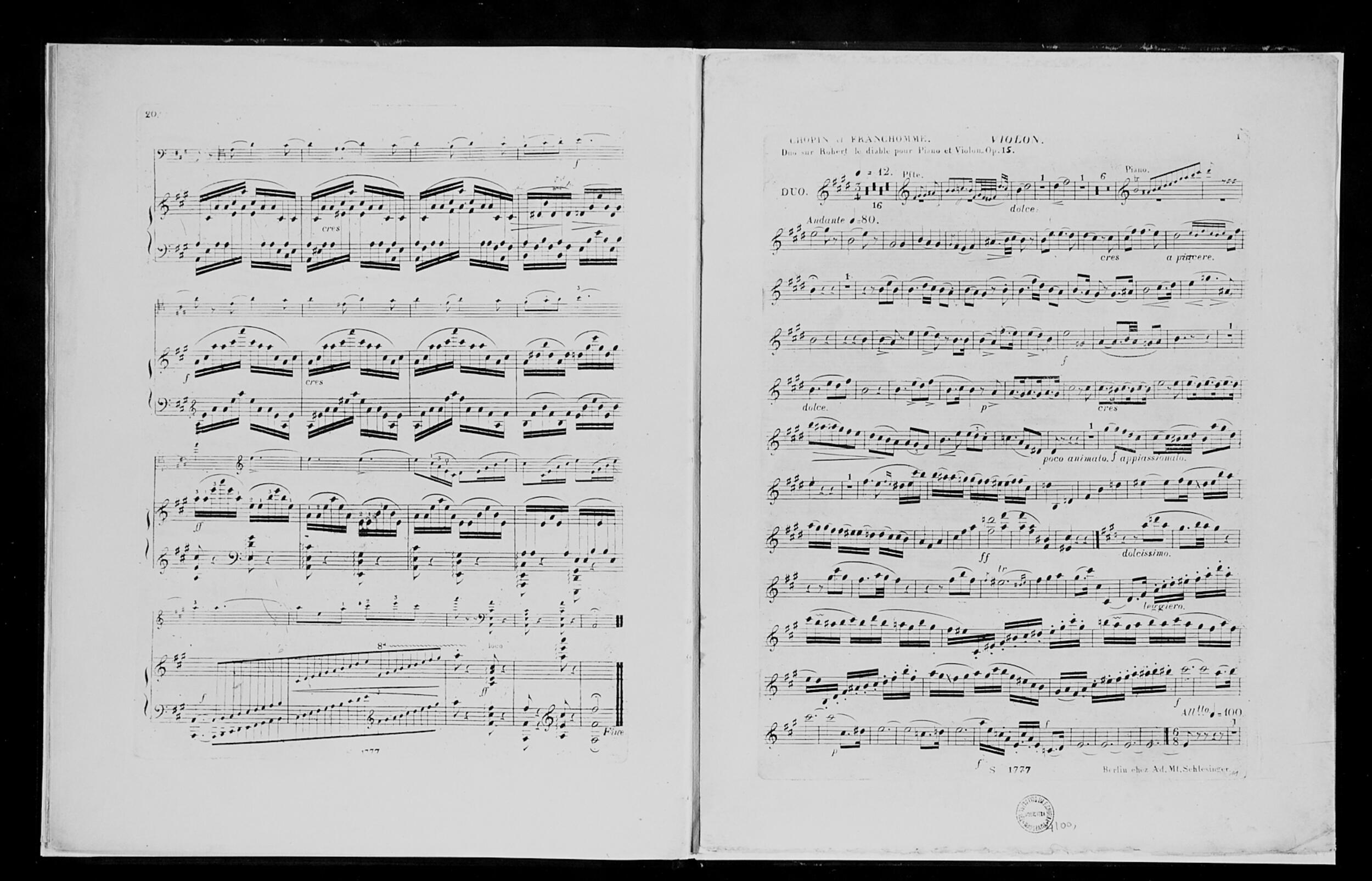 Grand Duo Concertant E-dur na tematy z opery „Robert Le Diable” Giacomo Meyerbeera