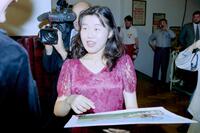 Erazm Ciołek, XIII Międzynarodowy Konkurs Pianistyczny im. Fryderyka Chopina, Przesłuchania konkursowe: Nami Ejiri (Japonia) po występie w kuluarach Filharmonii Narodowej, Warszawa, 10/1995 r., s. 1–15., [1-3] - Nami Ejiri udziela wywiadu;, [4-6] - ujęcia quasi-portretowe Nami Ejiri;, [7] - Nami Ejiri daje autograf;, [8-12] - Nami Ejiri z otrzymanym od dzieci rysunkiem;, [13-15] - obsługa konkursu.