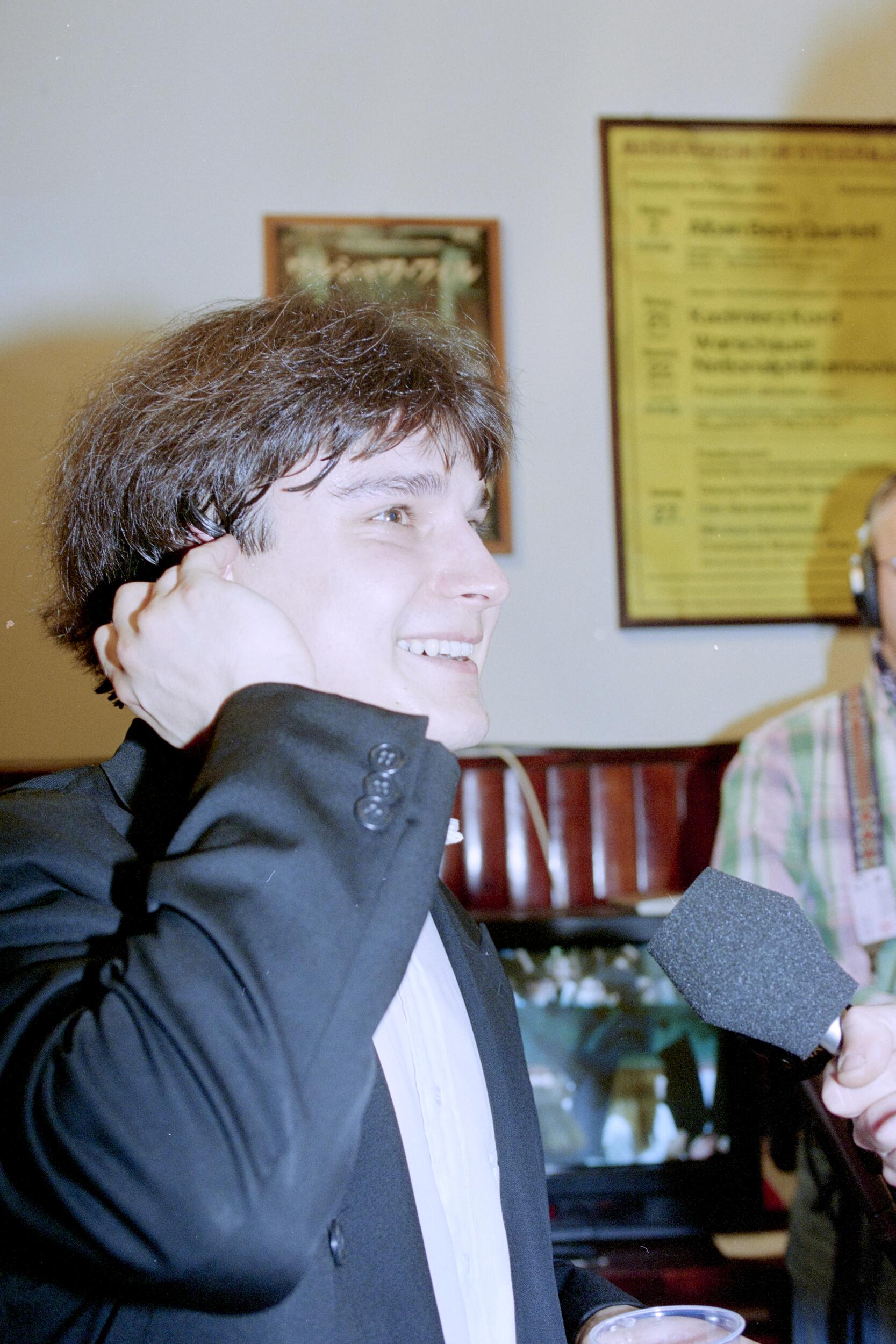Alexei Sultanov (Rosja) po przesłuchaniu w foyer Filharmonii Narodowej podczas XIII Międzynarodowego Konkursu Pianistycznego im. Fryderyka Chopina