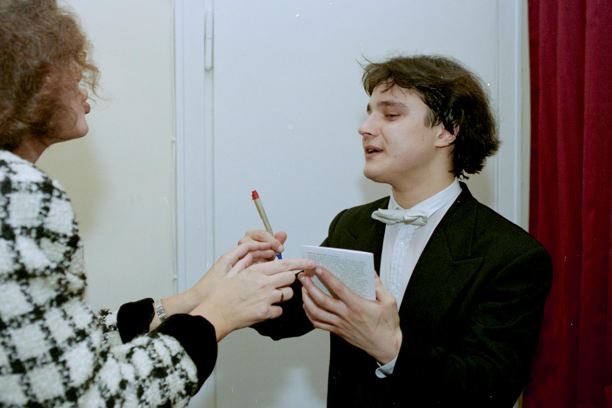 Alexei Sultanov (Rosja) po przesłuchaniu w foyer Filharmonii Narodowej podczas XIII Międzynarodowego Konkursu Pianistycznego im. Fryderyka Chopina