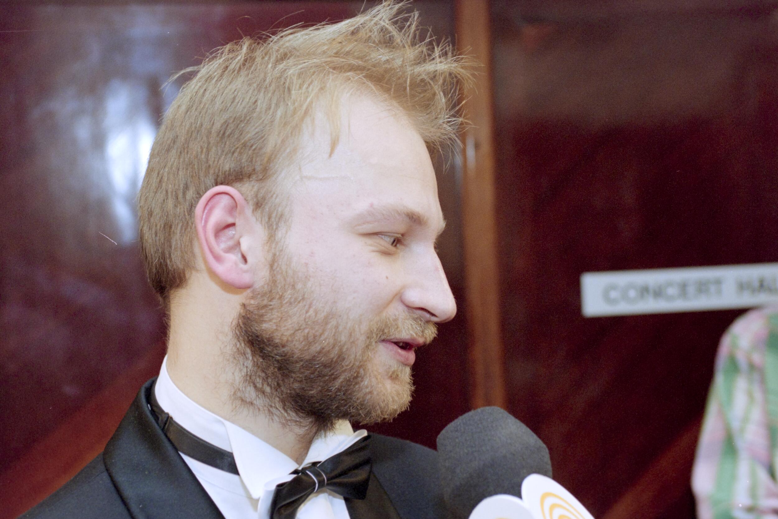Tomasz Bartoszek (Polska) po przesłuchaniu w foyer Filharmonii Narodowej podczas XIII Międzynarodowego Konkursu Pianistycznego im. Fryderyka Chopina