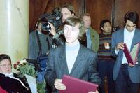 Erazm Ciołek, XIII Międzynarodowy Konkurs Pianistyczny im. Fryderyka Chopina, Rozdanie nagród pozaregulaminowych w Sali Kameralnej Filharmonii Narodowej, Warszawa, 21/10/1995, s. 1–17., [1–2] – wicedyrektor Joanna Jarzyńska-Pasztaleniec wręcza Nagrodę Biblioteki Narodowej dla laureatów – od lewej: Rem Urasin (Rosja), Philippe Giusiano (Francja), Rika Miyatani (Japonia), ojciec Magdaleny Lisak (Polska);, [3] – Rem Urasin (Rosja), w tle inni laureaci, z lewej Jadwiga Gadulanka;, [4–5] – od lewej: Michał Ferber (Polska), Philippe Giusiano (Francja), Rem Urasin (Rosja);, [7–9] – dyrektor Anna Knapik wręcza Nagrodę Centrum Paderewskiego dla dwóch najlepszych Polaków: odbiera ojciec Magdaleny Lisak i Jan Kazimierz Broja;, [9–10] – Barbara Drzewiecka wręcza Janowi Kazimierzowi Broji Nagrodę im. Zbigniewa Drzewieckiego dla najlepszego Polaka, który nie wszedł do finału;, [11–13] – prezes Antonina Szulc wręcza ojcu Magdaleny Lisak Nagrodę „Kopernika”;, [14–17] – Barbara Stann-Wibrowska wręcza ojcu Magdaleny Lisak i Philippe Giusiano Nagrodę Festiwalu w Nohant.