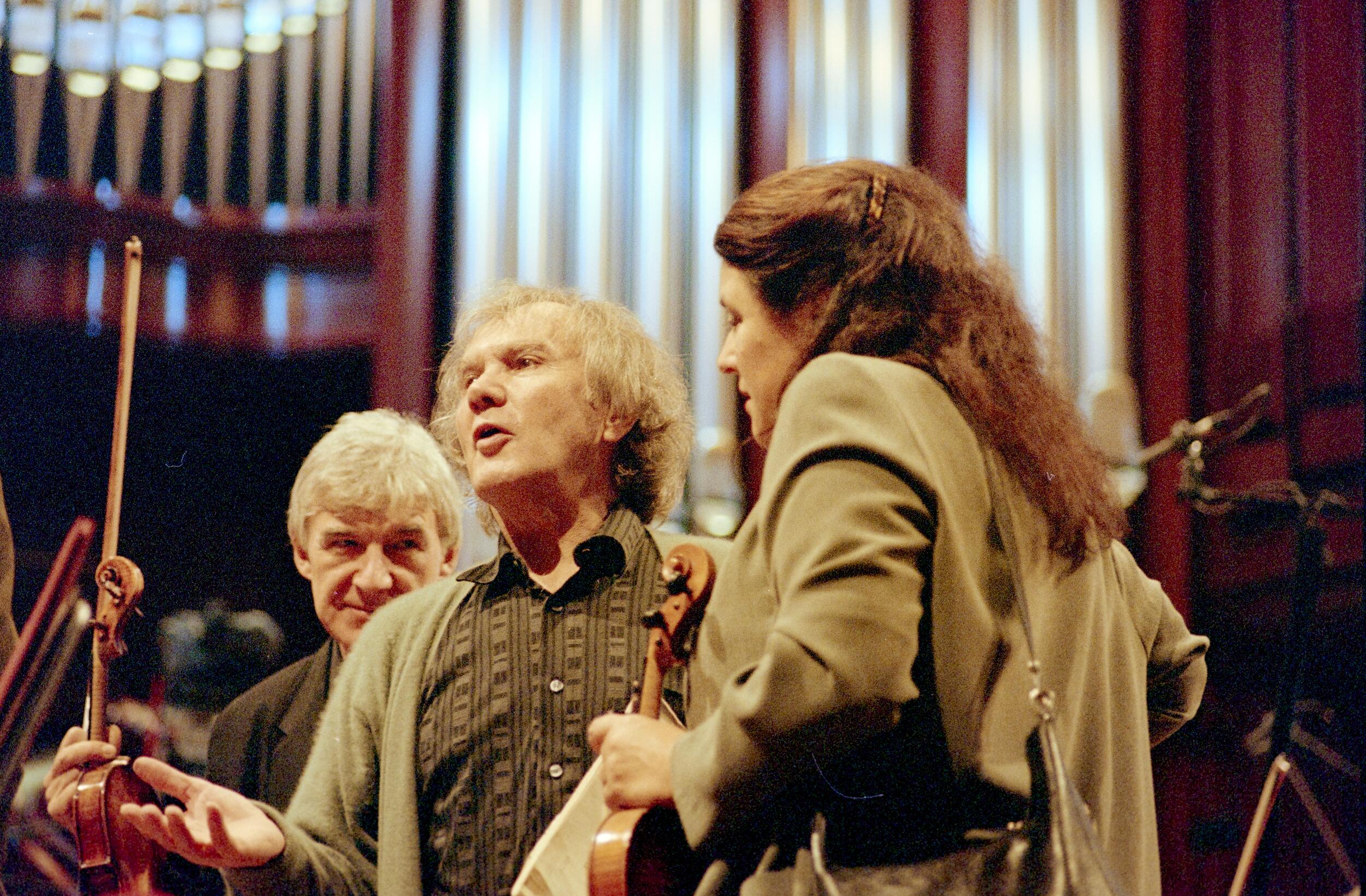 Chen Sa (Chiny) i dyrygent Kazimierz Kord podczas próby z orkiestrą przed finałem XIV Międzynarodowego Konkursu Pianistycznego im. Fryderyka Chopina