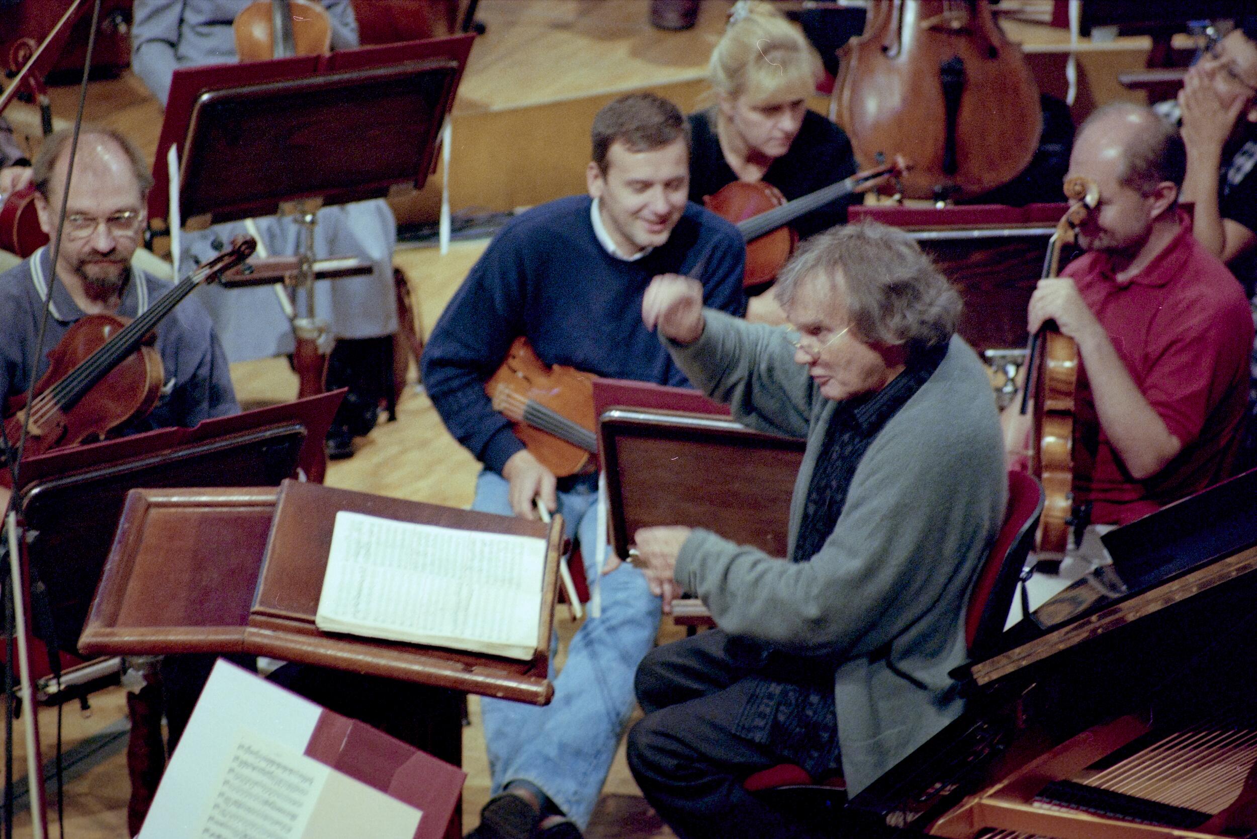Chen Sa (Chiny) i dyrygent Kazimierz Kord podczas próby z orkiestrą przed finałem XIV Międzynarodowego Konkursu Pianistycznego im. Fryderyka Chopina