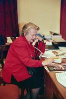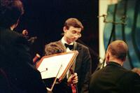 Leszek Kubiak, XIV Międzynarodowy Konkurs Pianistyczny im. Fryderyka Chopina, Przesłuchania finałowe: jury, uczestnicy Konkursu i widownia podczas przerwy, Warszawa, Filharmonia Narodowa, 18–19/10/2000 r., s. 1–21., [1–2] – stoisko TIFC;, [3–21] – różne ujęcia jury, uczestników Konkursu i widowni.