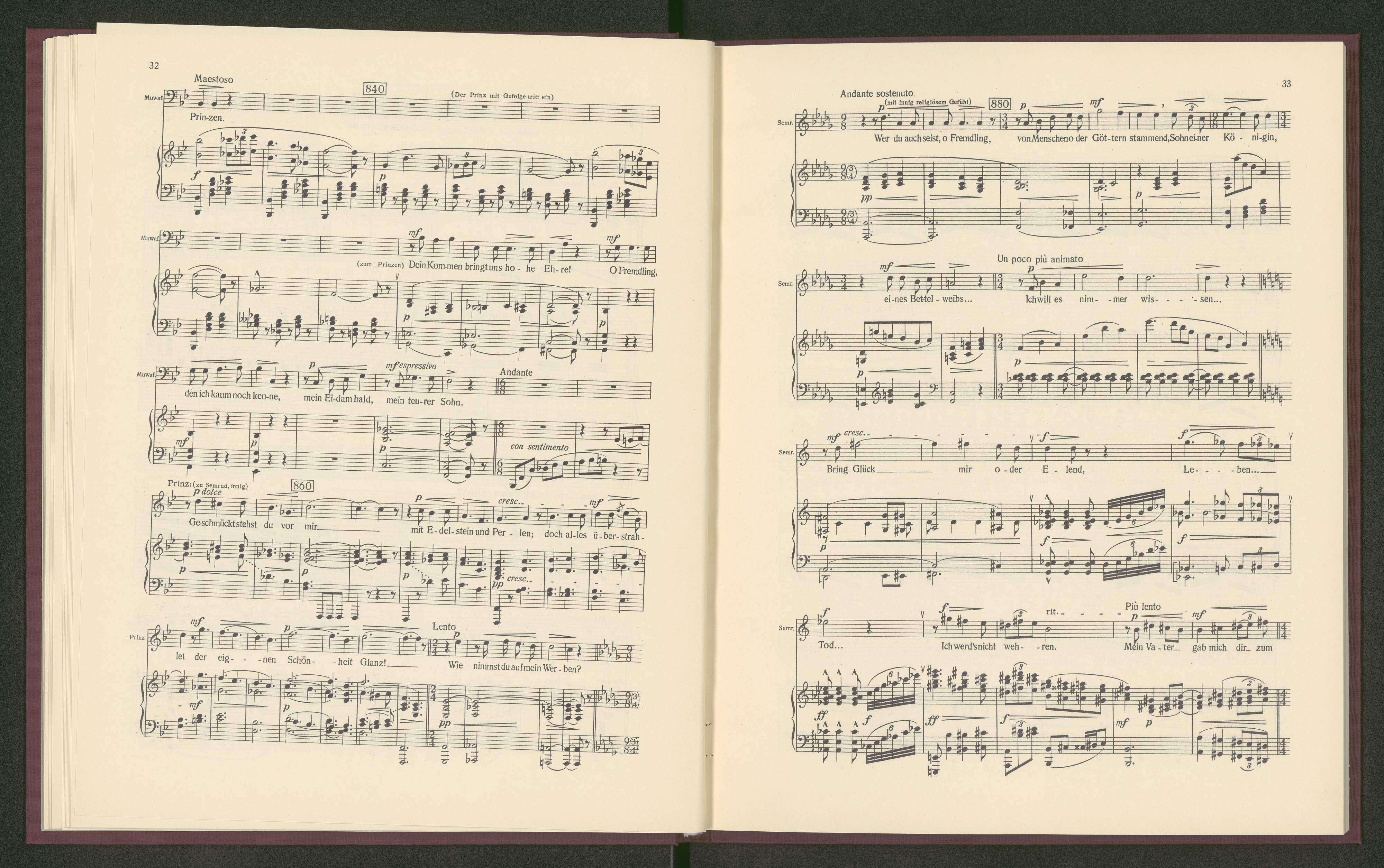 SEMRUD | EIN MÄRCHEN AUS DEM ORIENT | in 5 Bildern und einem Vorspiel | (Text unter Zugrundelegung eines Märchens aus " Tausendundein Tag", | einer dramatischen Skizze von Benno Ziegler und der komischen Oper "" von Ch. W. Gluck) | berbeitet und vertont von | RAOUL KOCZALSKI | Op. 118 | Klavierauszung mit Text | verlag und Eigentum für alle Länder Tischer & Jagenberg G. m. b. H., Köln-Bayental