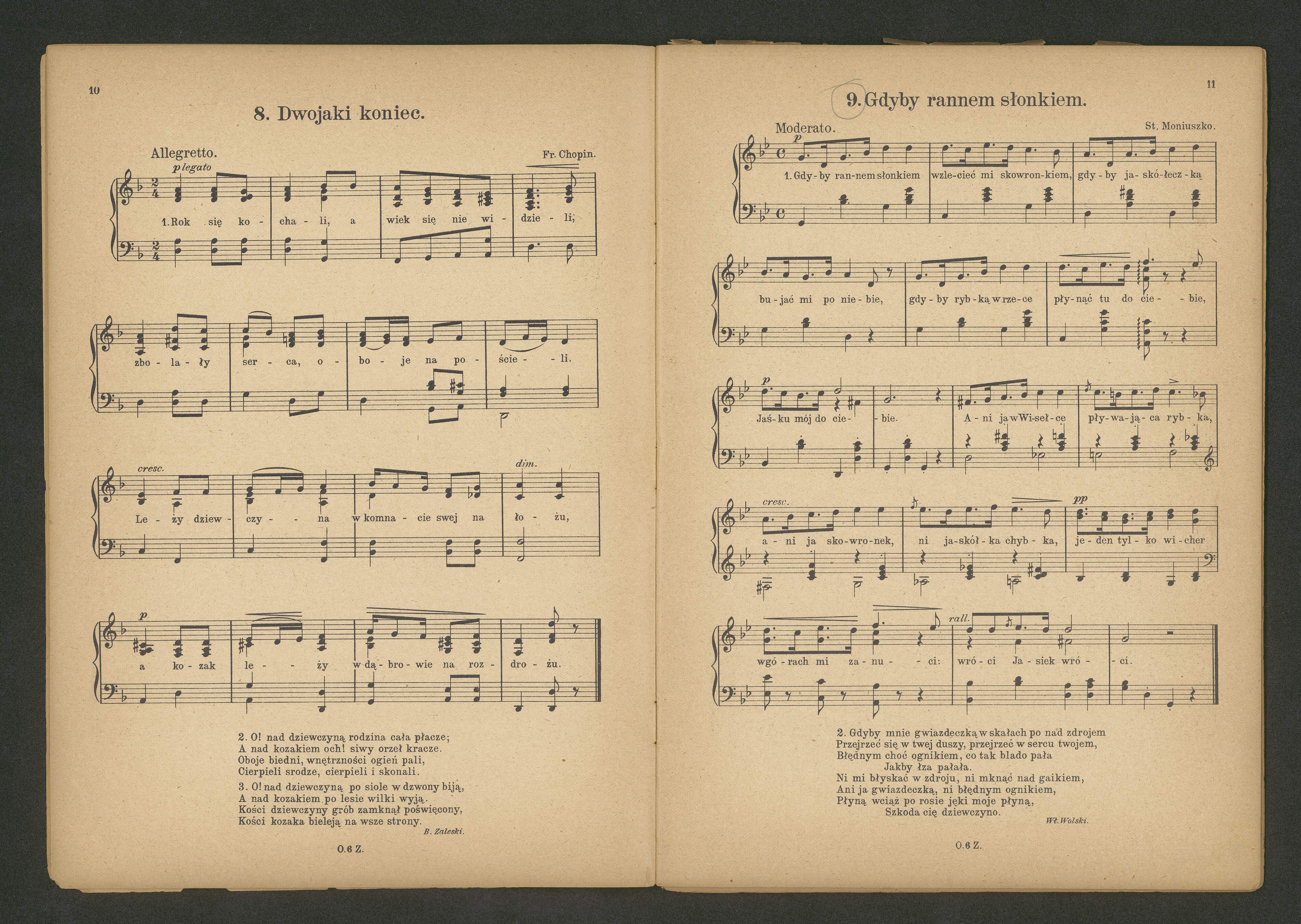 [title page:] Wydanie VI | Wydawnictwo pieśni polskich. | Zeszyt I. | Część 1. | Dumki polskie | na fortepian | z podłożonym tekstem do śpiewu | opracował | Otton Mieczysław Żukowski. | OP. 58. [space] Cena: netto K. 4._ | KRAKÓW | Skład główny w księgarni A. Piwarskiego i S|k|i. |