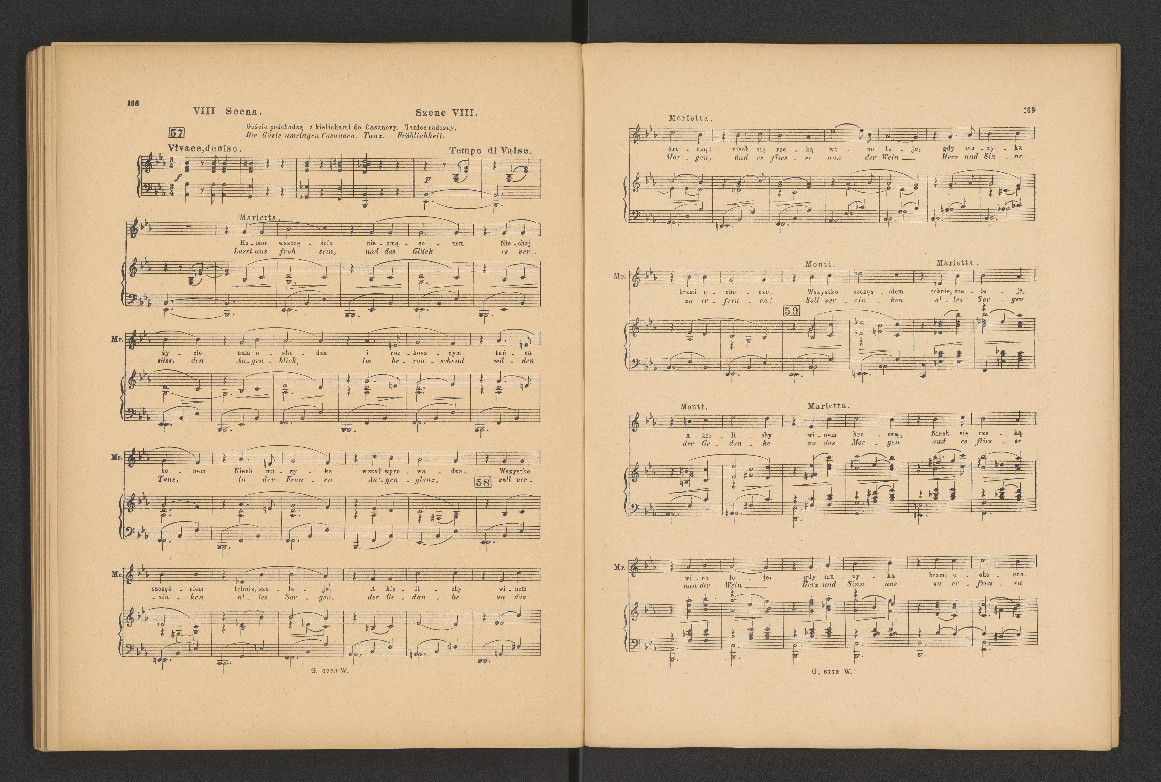 LUDOMIR RÓŻYCKI | CASANOVA | [at left:] Opera komiczna w 3 aktach | z prologiem i epilogiem | słowa | Juljana Krzewińskiego | [at right:] Komische Oper in 3 akten | mit Von - und Nachspiel | Deutsch | von Bernard Szarlitt | Partycja do śpiewu | Klaviereauszug mit Text | G [owl] W | Propriété des éditeurs pour tous les pays | GEBETHNER & WOLFF | Warszawa - Kraków - Lublin - Paryż - Poznań - Wilno - Zakopane | New York, The polish book Importing co. Inc
