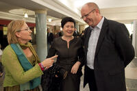 Wojciech Grzędziński, Chopin i Jego Europa 2010, Prezydent m.st. Warszawy Hanna Gronkiewicz-Waltz podczas rozmów w foyer Filharmonii Narodowej przed koncertem „Nadzwyczajny koncert nocny”, Warszawa, 28/08/2010.