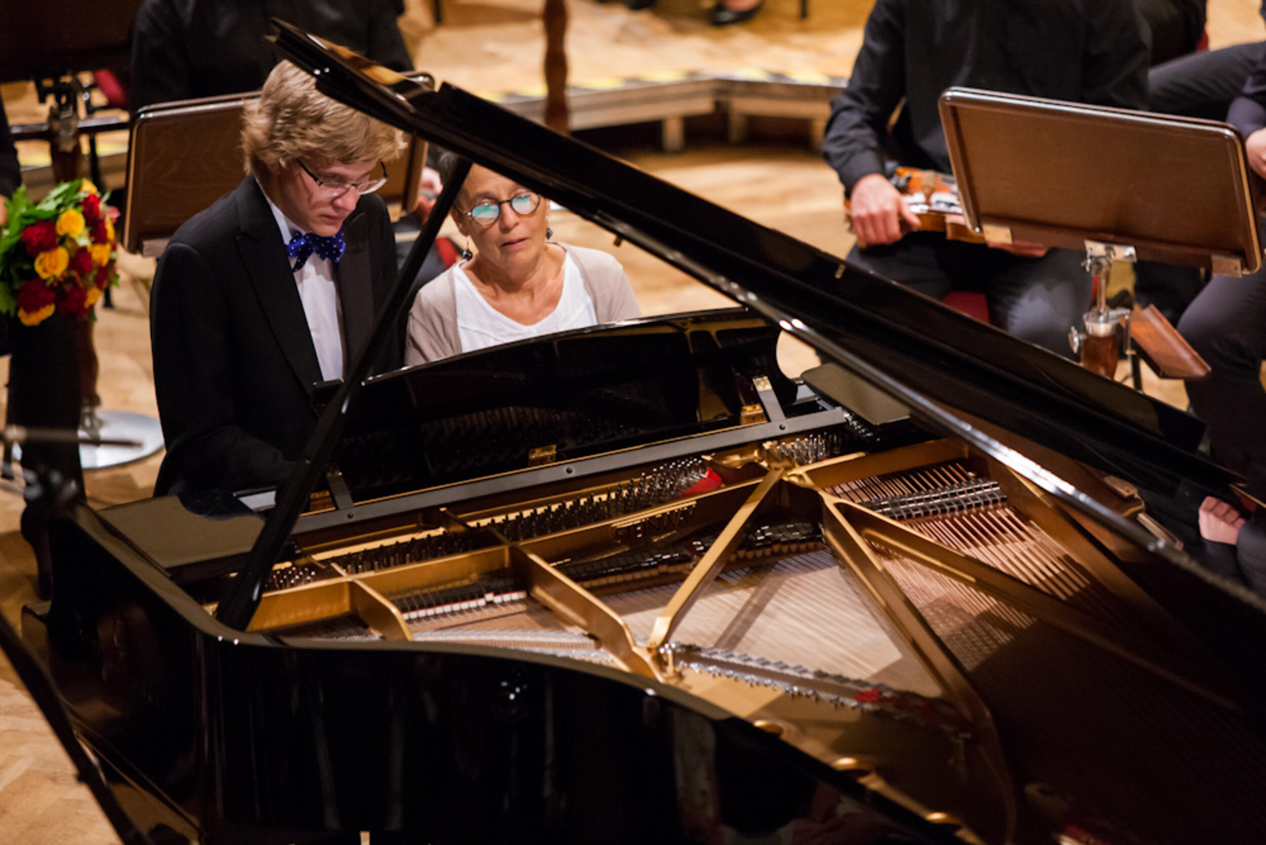 Część II koncertu symfonicznego Jana Lisieckiego i Marii João Pires z „Aukso” Orkiestrą Kameralną Miasta Tychy pod batutą Marka Mosia w Sali Koncertowej Filharmonii Narodowej podczas IX Międzynarodowego Festiwalu Muzycznego „Chopin i Jego Europa” [6]