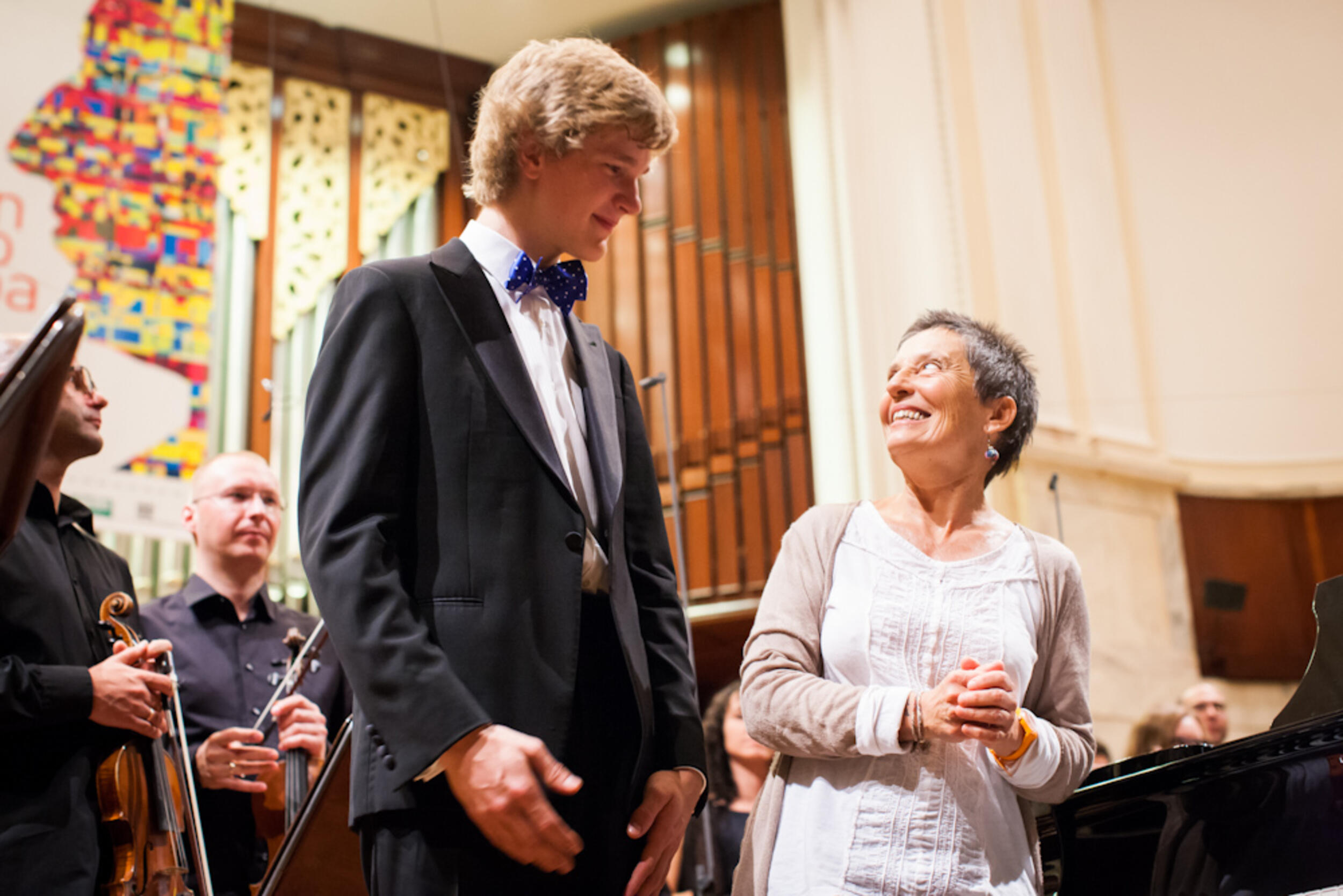 Część II koncertu symfonicznego Jana Lisieckiego i Marii João Pires z „Aukso” Orkiestrą Kameralną Miasta Tychy pod batutą Marka Mosia w Sali Koncertowej Filharmonii Narodowej podczas IX Międzynarodowego Festiwalu Muzycznego „Chopin i Jego Europa” [10]