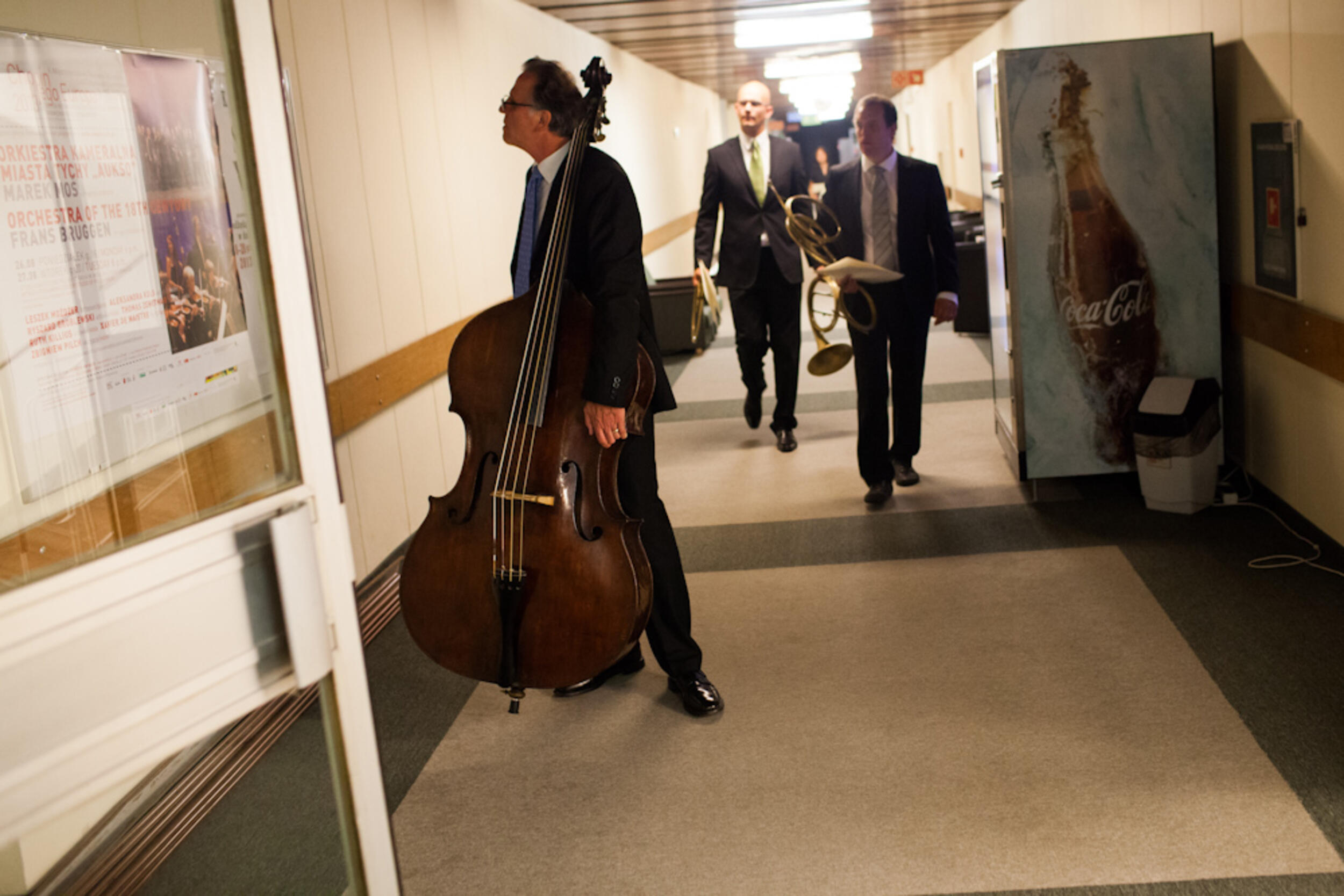 Muzycy oraz publiczność w trakcie przerwy po I części koncertu symfonicznego w Studiu Koncertowym Polskiego Radia im. Witolda Lutosławskiego podczas IX Międzynarodowego Festiwalu Muzycznego „Chopin i Jego Europa” [3]