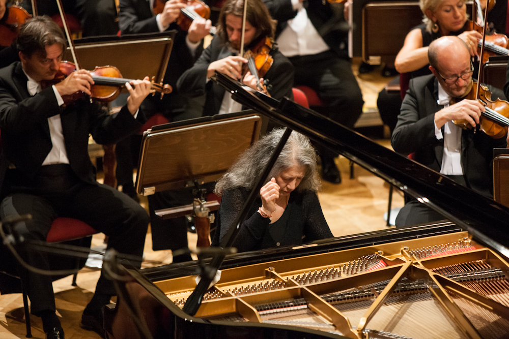 Część I koncertu symfonicznego Marthy Argerich z Narodową Orkiestrą Symfoniczną Polskiego Radia w Katowicach pod batutą Jacka Kaspszyka w Sali Koncertowej Filharmonii Narodowej podczas IX Międzynarodowego Festiwalu Muzycznego „Chopin i Jego Europa” [8]