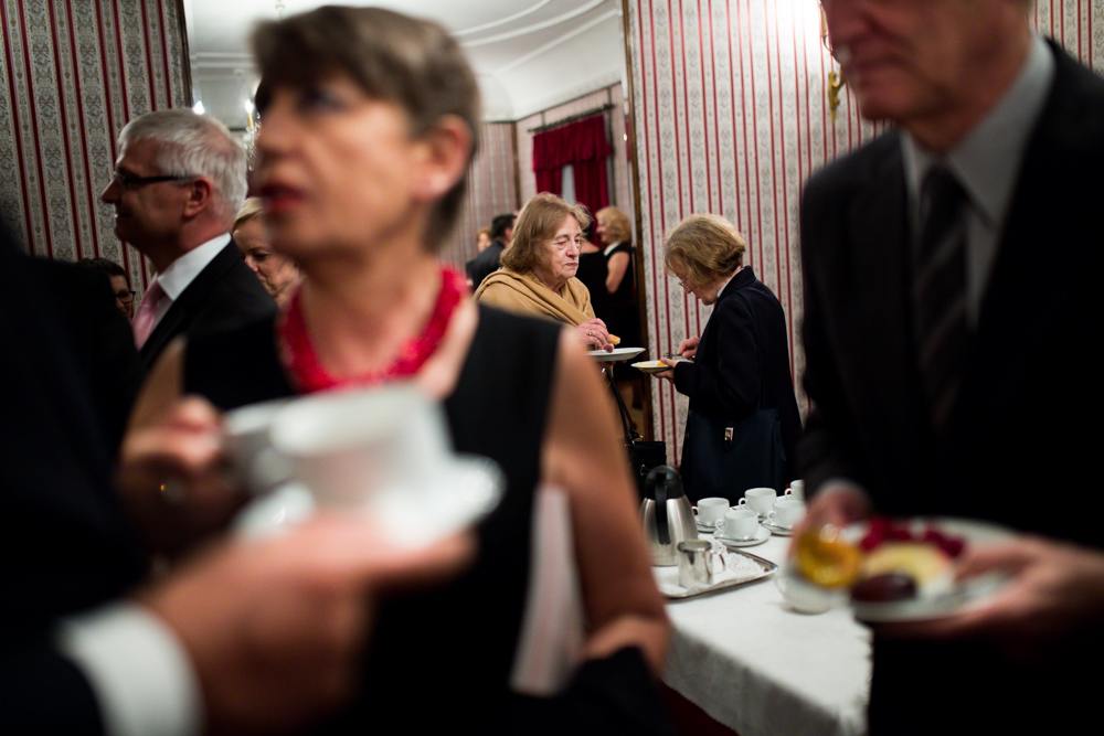 Goście oraz publiczność w foyer Filharmonii Narodowej po I części finałowego koncertu symfonicznego podczas IX Międzynarodowego Festiwalu Muzycznego „Chopin i Jego Europa” [4]