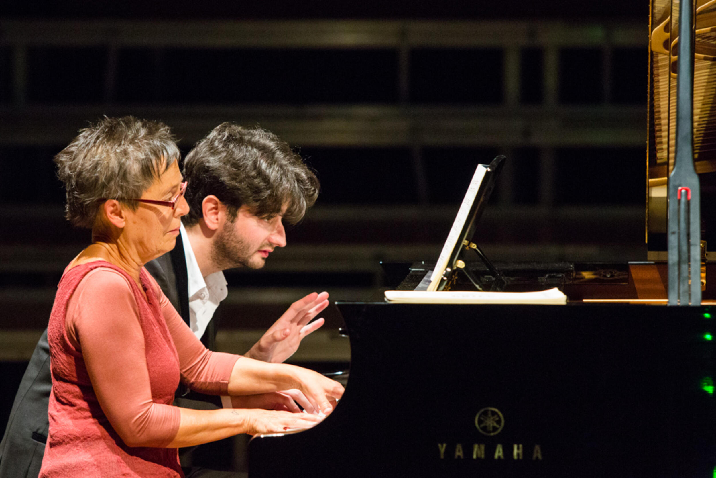 Duet fortepianowy na cztery ręce Marii João Pires i Juliena Brocala w Studiu Koncertowym Polskiego Radia im. Witolda Lutosławskiego podczas X Międzynarodowego Festiwalu Muzycznego „Chopin i Jego Europa” [6]