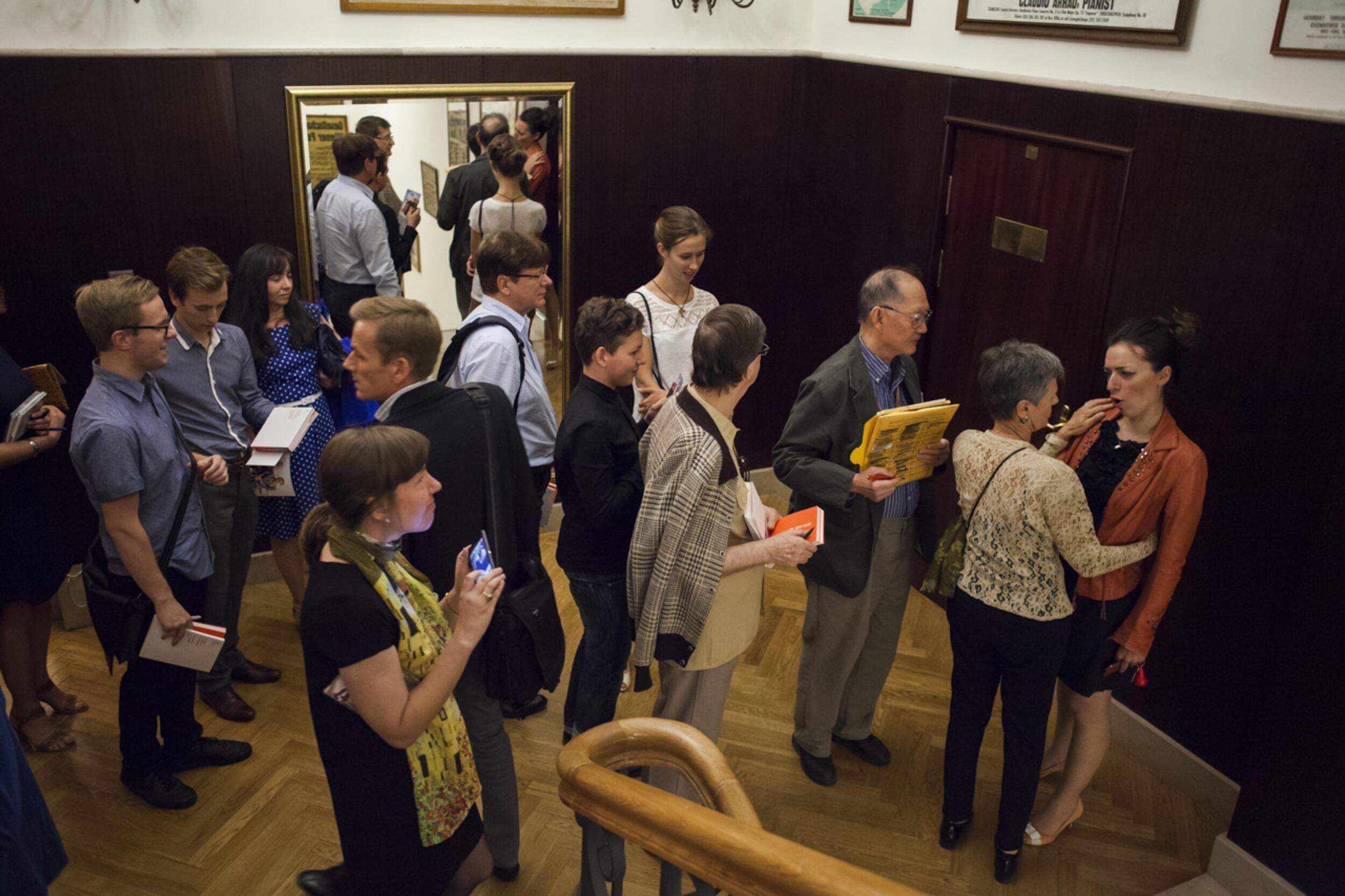 Rozmowy kuluarowe w trakcie przerwy po I części koncertu symfonicznego w Filharmonii Narodowej podczas XI Międzynarodowego Festiwalu Muzycznego „Chopin i Jego Europa” [4]