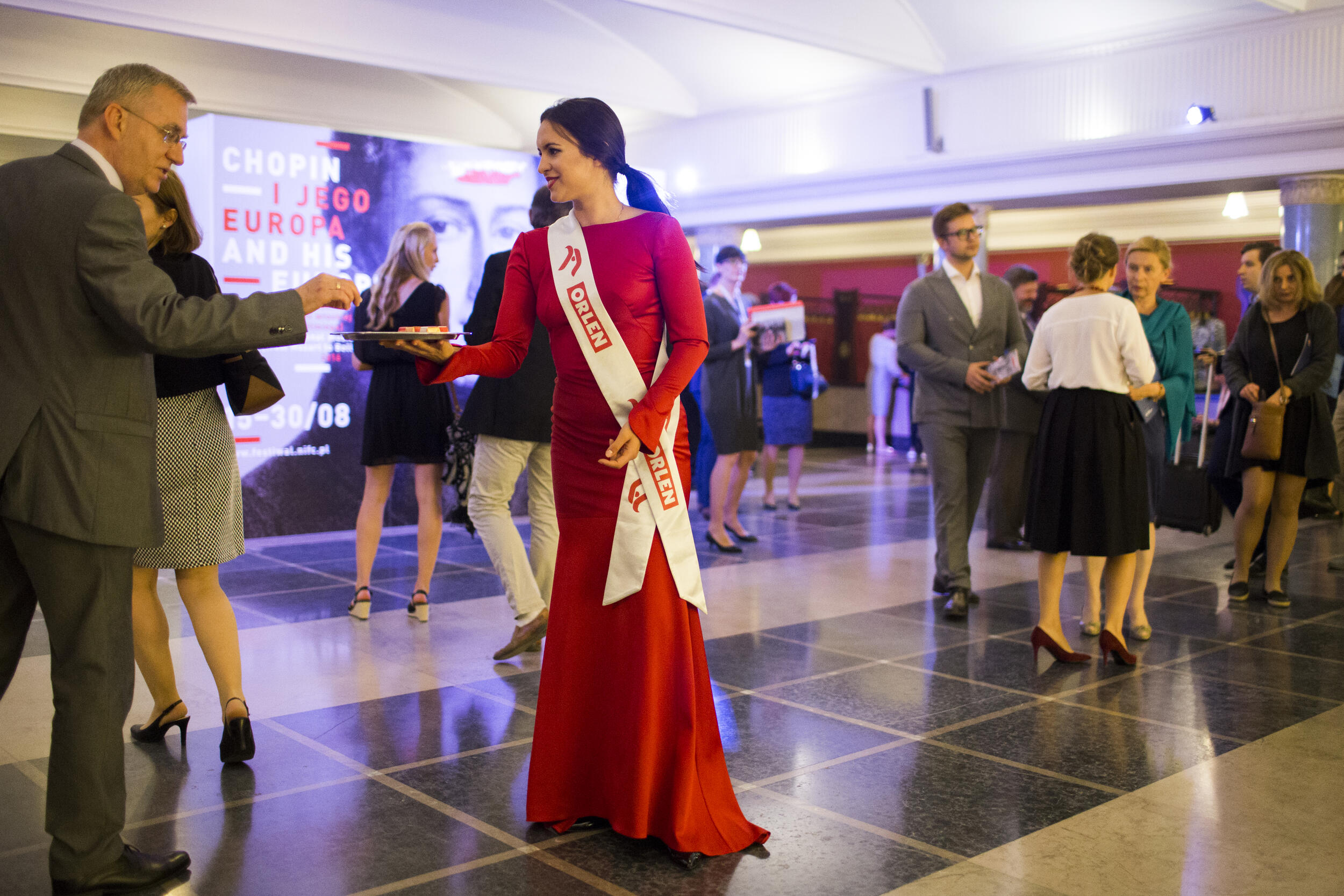 Goście przed otwarciem Festiwalu w holu Filharmonii Narodowej podczas XII Międzynarodowego Festiwalu Muzycznego „Chopin i Jego Europa” [5]