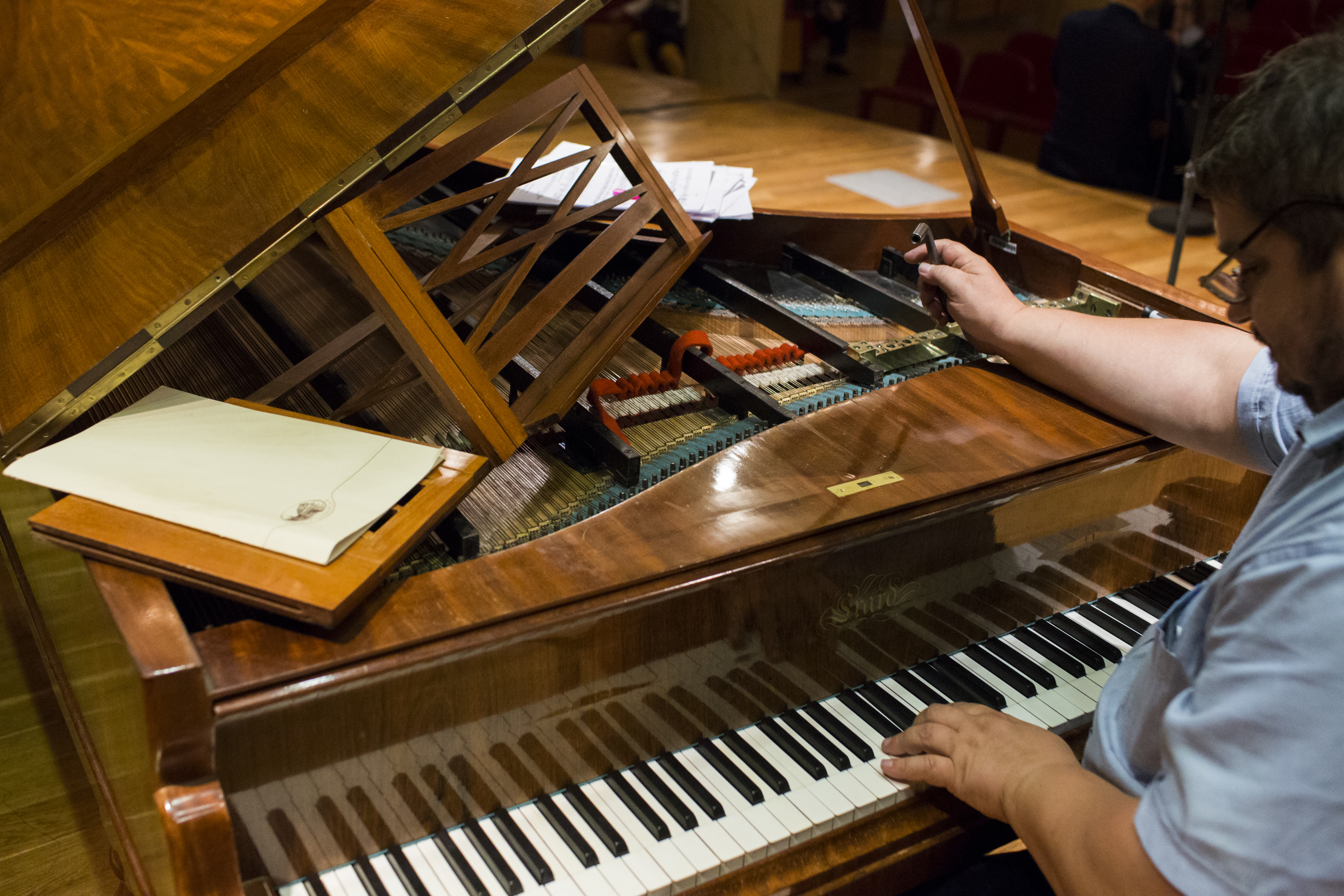 Strojenie instrumentu historycznego przed recitalem wokalnym w Sali Kameralnej Filharmonii Narodowej podczas XII Międzynarodowego Festiwalu Muzycznego „Chopin i Jego Europa” [2]